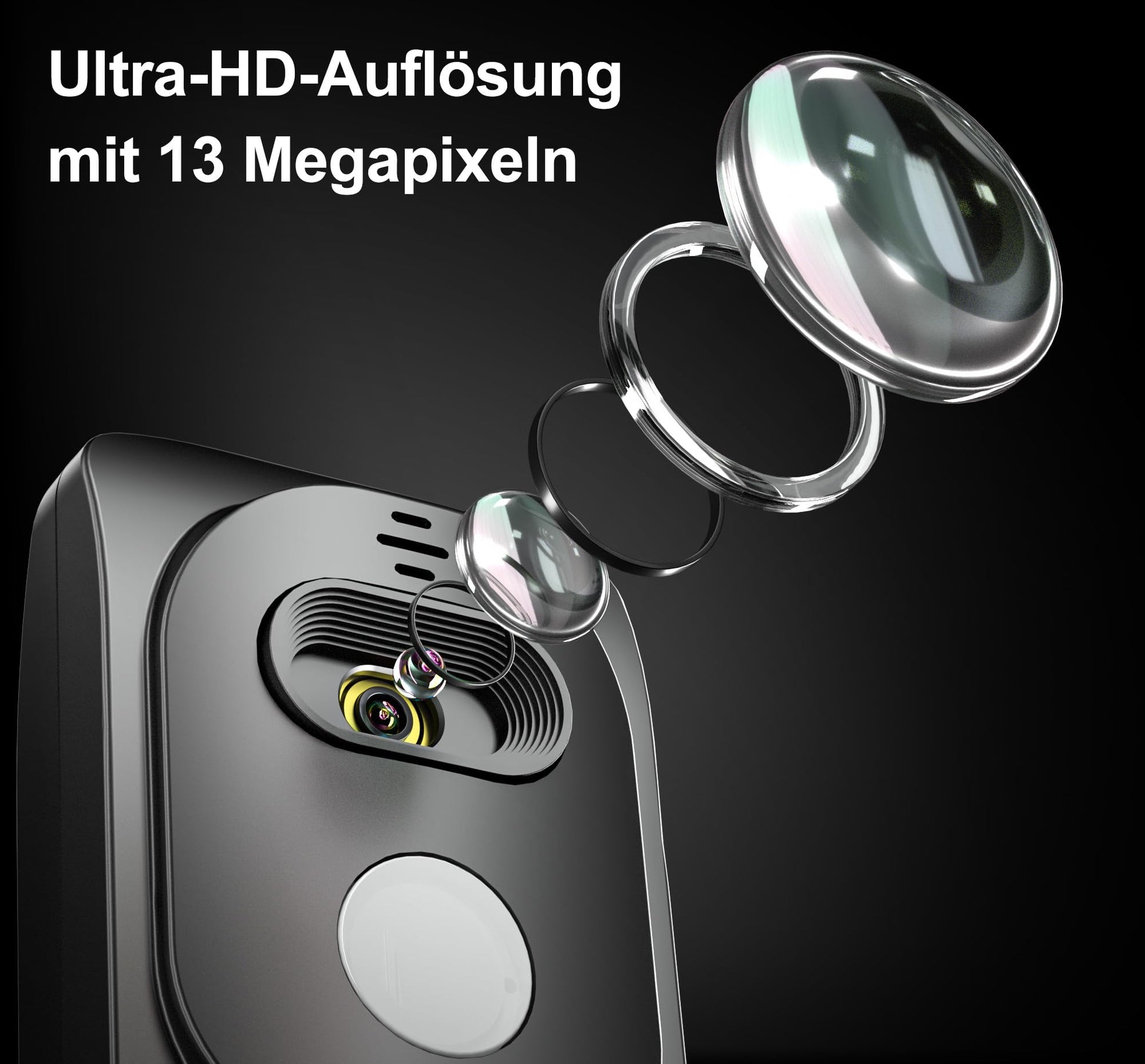Die Kamera liefert dank ihres 13-Megapixel-CMOS-Sensors gestochen scharfe Bilder in Ultra-HD-Auflösung (4160 x 3120 Pixel). Für Videokonferenzen und Aufnahmen ermöglicht sie eine flüssige Übertragung in Full HD (1920x1080) mit 30 Bildern pro Sekunde, was für detailreiche und ruckelfreie Präsentationen sorgt.