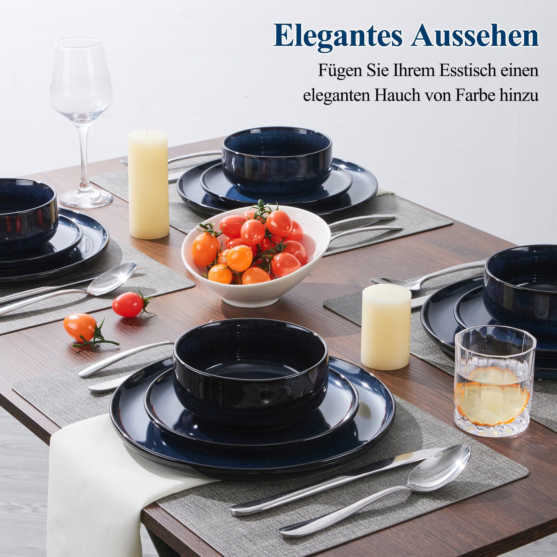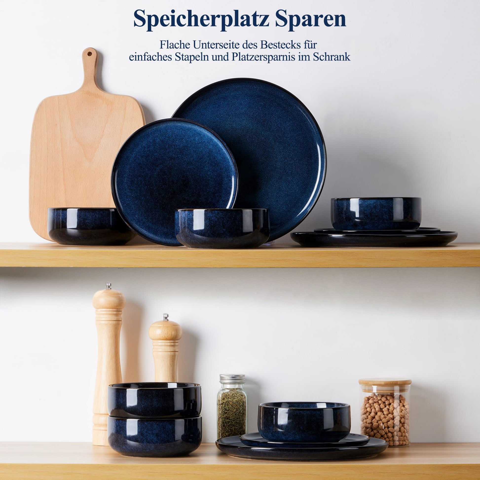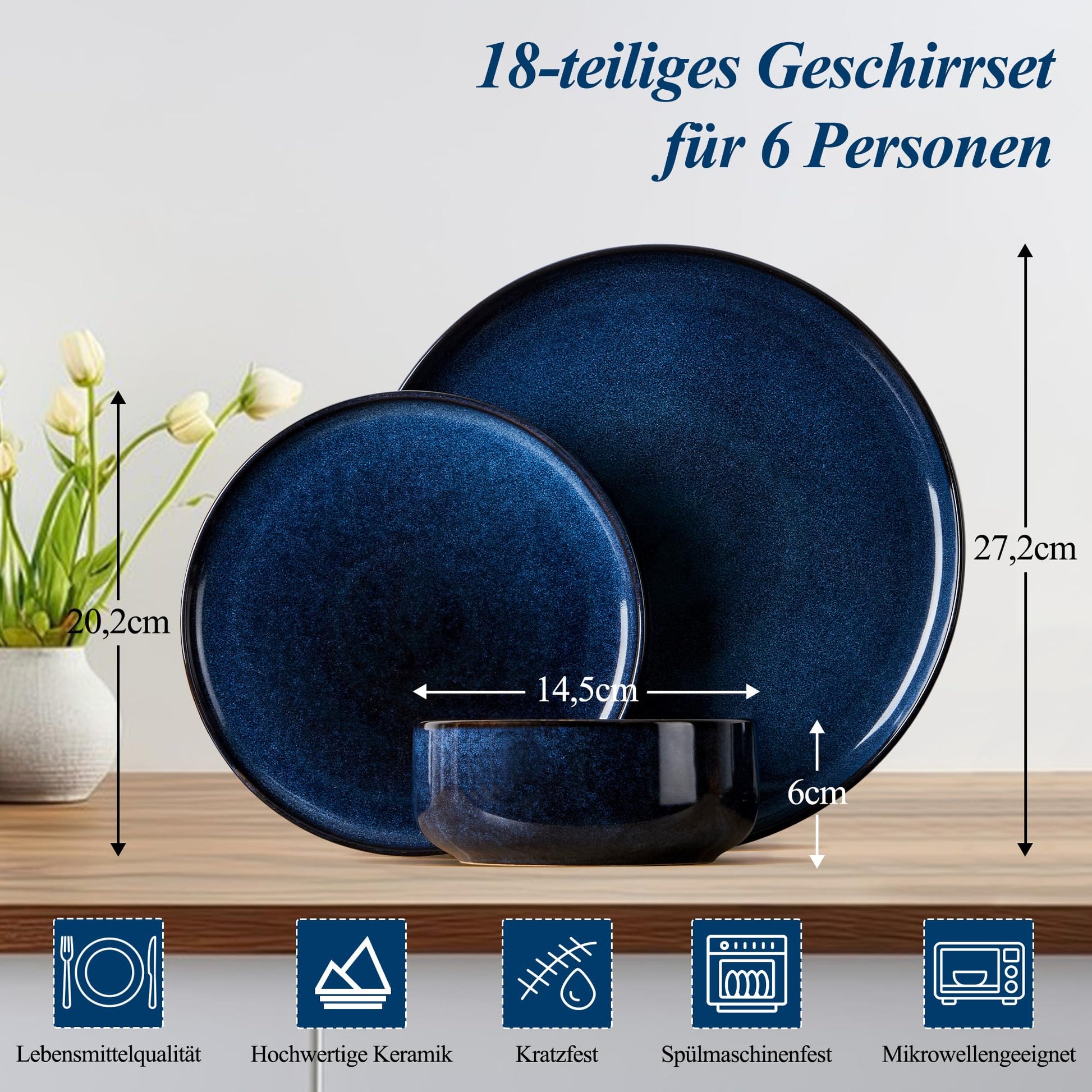 Joyfair Geschirrset 18-tlg Steinzeug für 6 Personen - Tiefsee Blau