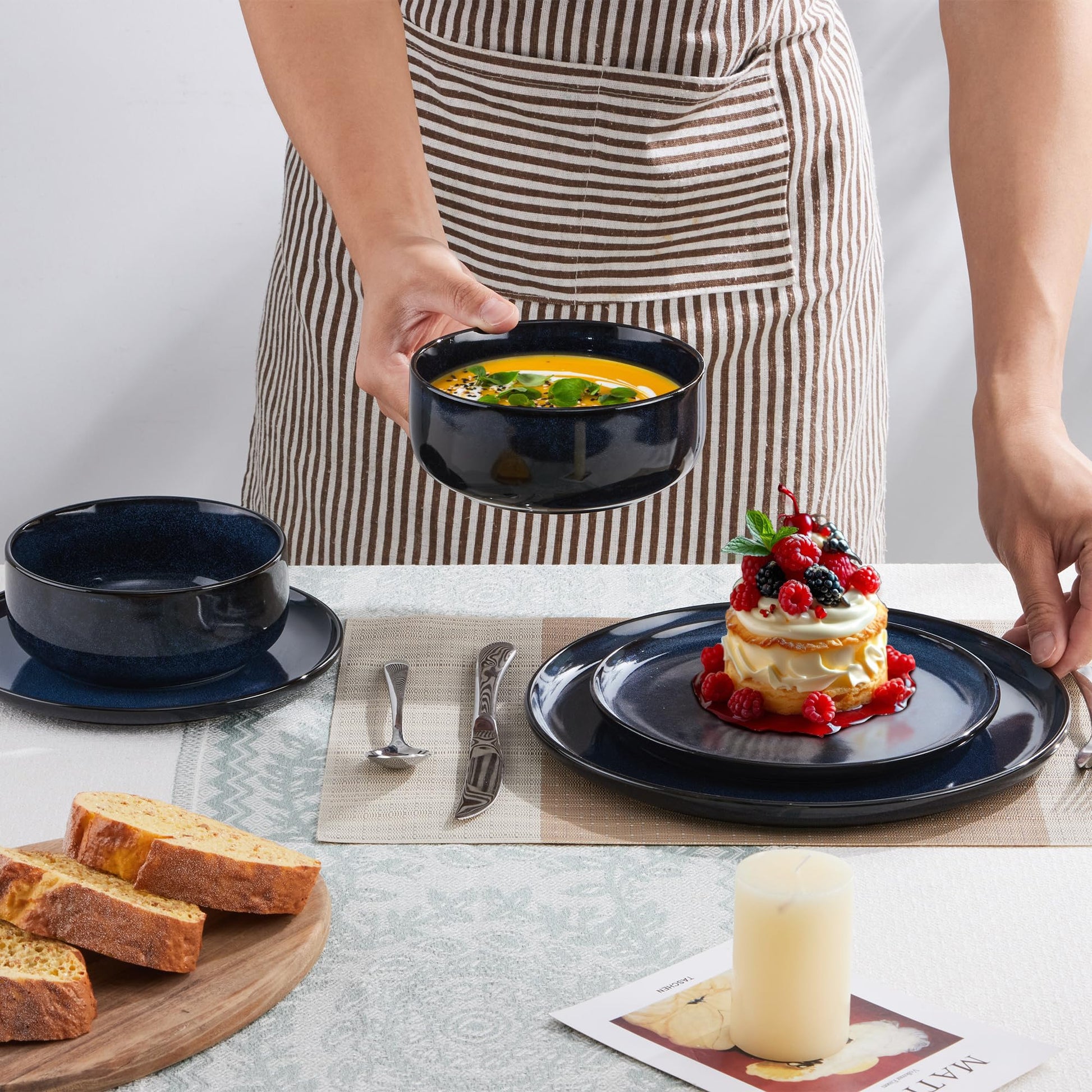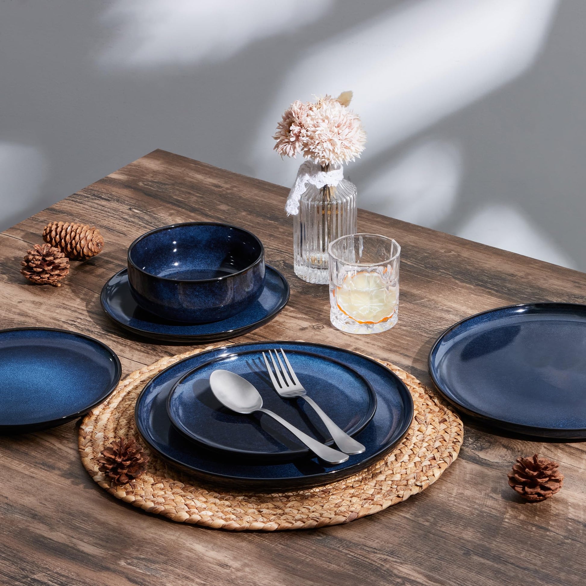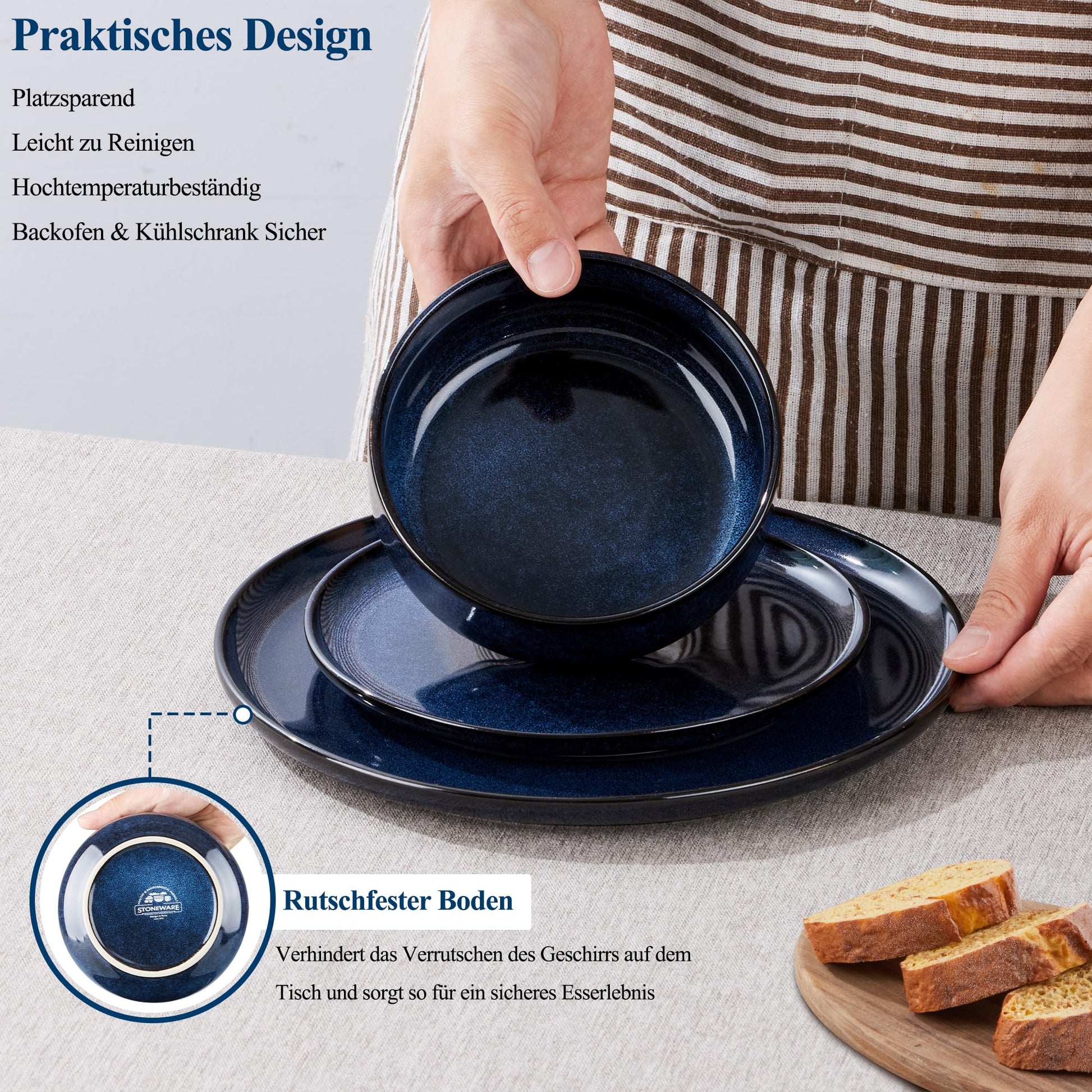 Joyfair Geschirrset 18-tlg Steinzeug für 6 Personen - Tiefsee Blau