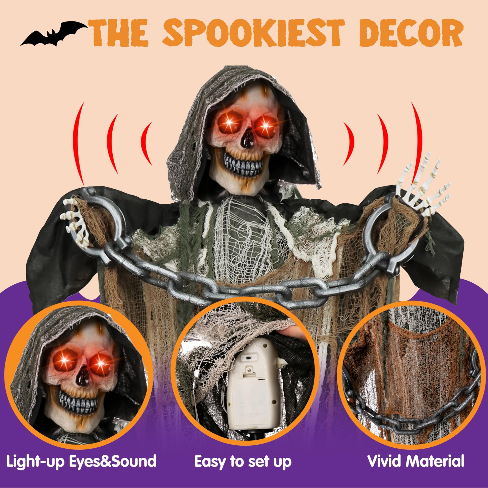 JOYIN Sensenmann Dekoration Animiert 175cm - Sound & Leuchtaugen