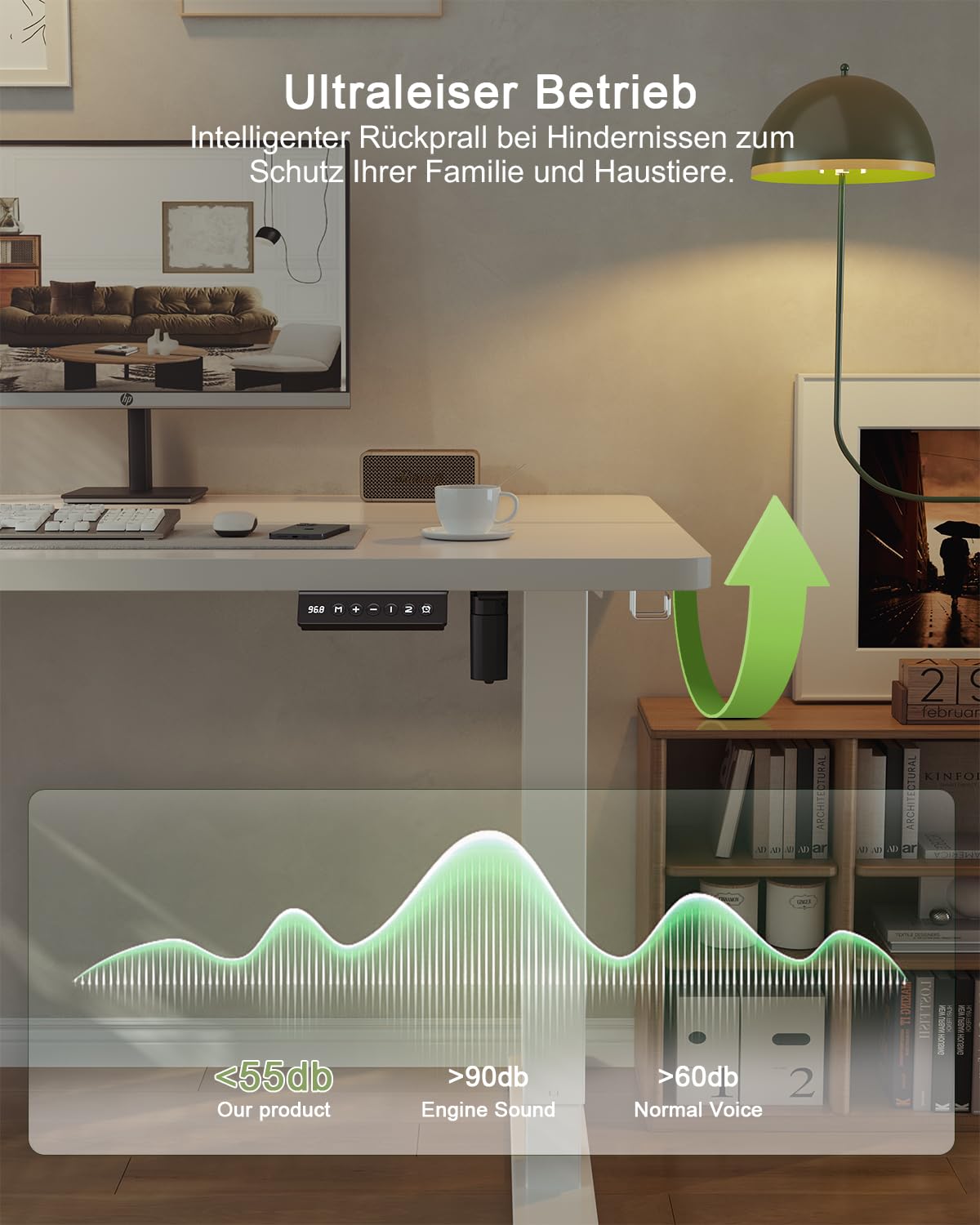 Der Tisch ist mit einer sensiblen Antikollisionsfunktion ausgestattet, die den Motor sofort stoppt, wenn er auf ein Hindernis trifft, um Schäden zu vermeiden. Ein zusätzlicher Überhitzungsschutz gewährleistet eine lange und sichere Lebensdauer des Motors.