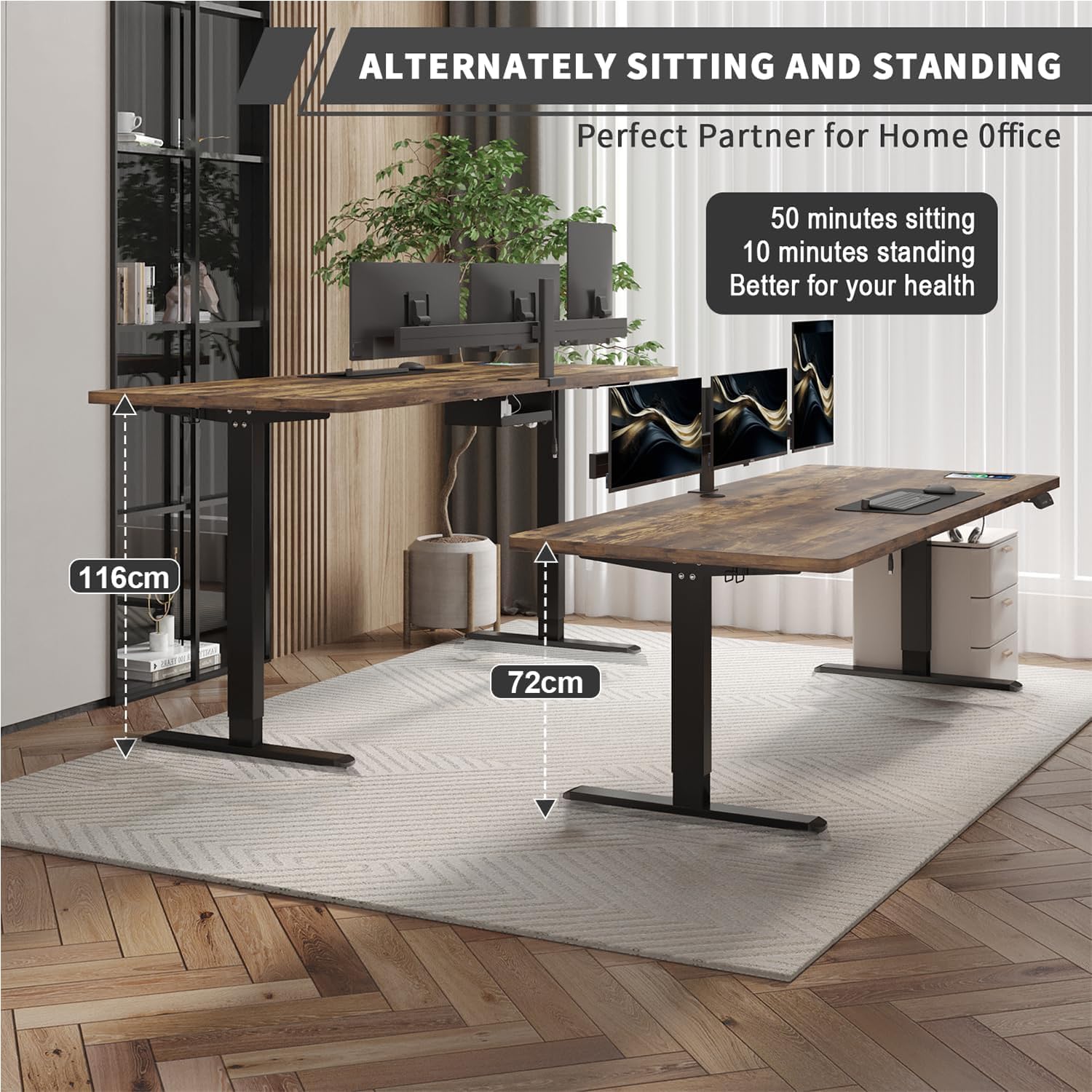 JUMMICO Elektrisch Höhenverstellbarer Schreibtisch 160x80cm Vintage-Braun