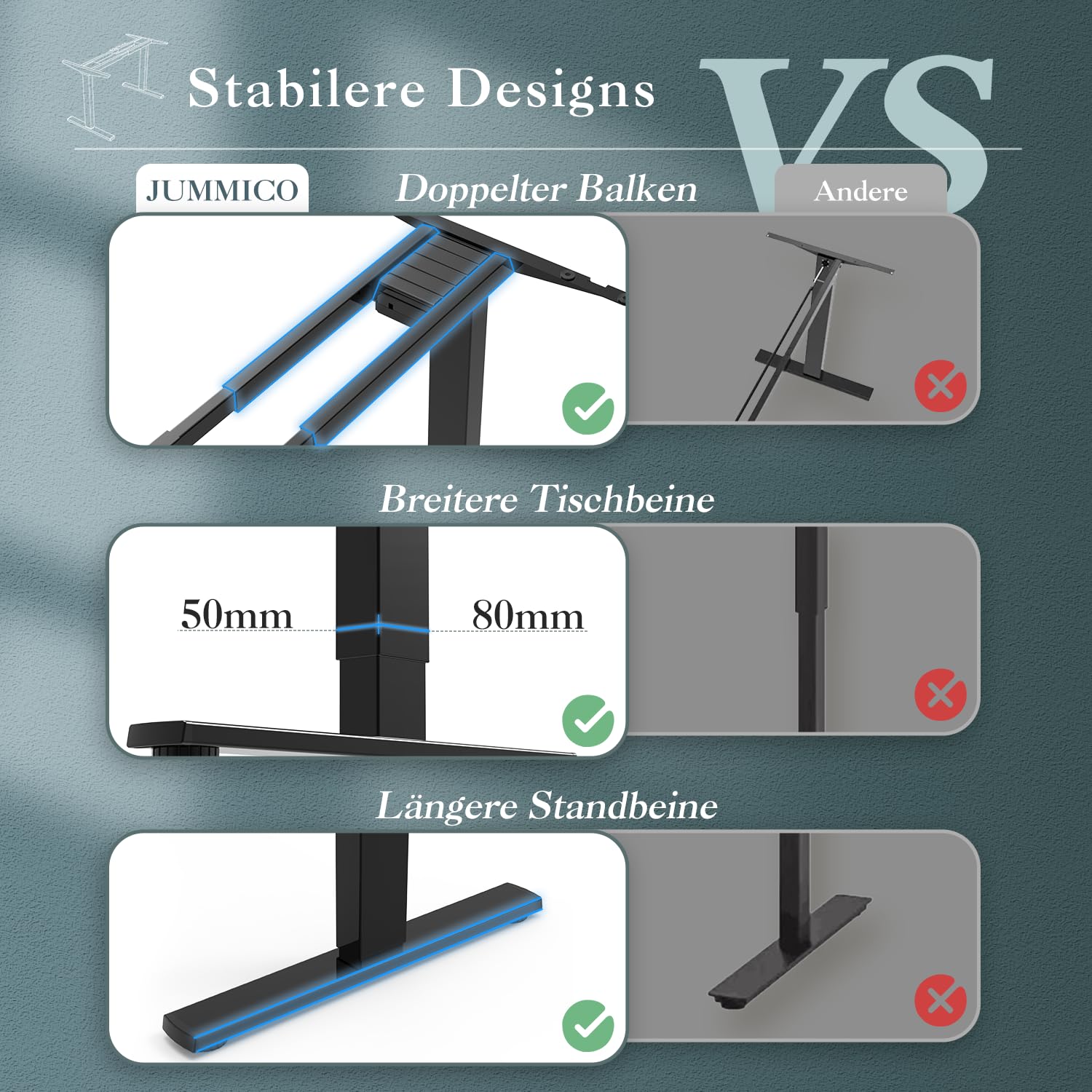 JUMMICO Dual-Motor Höhenverstellbares Schreibtischgestell – Schwarz