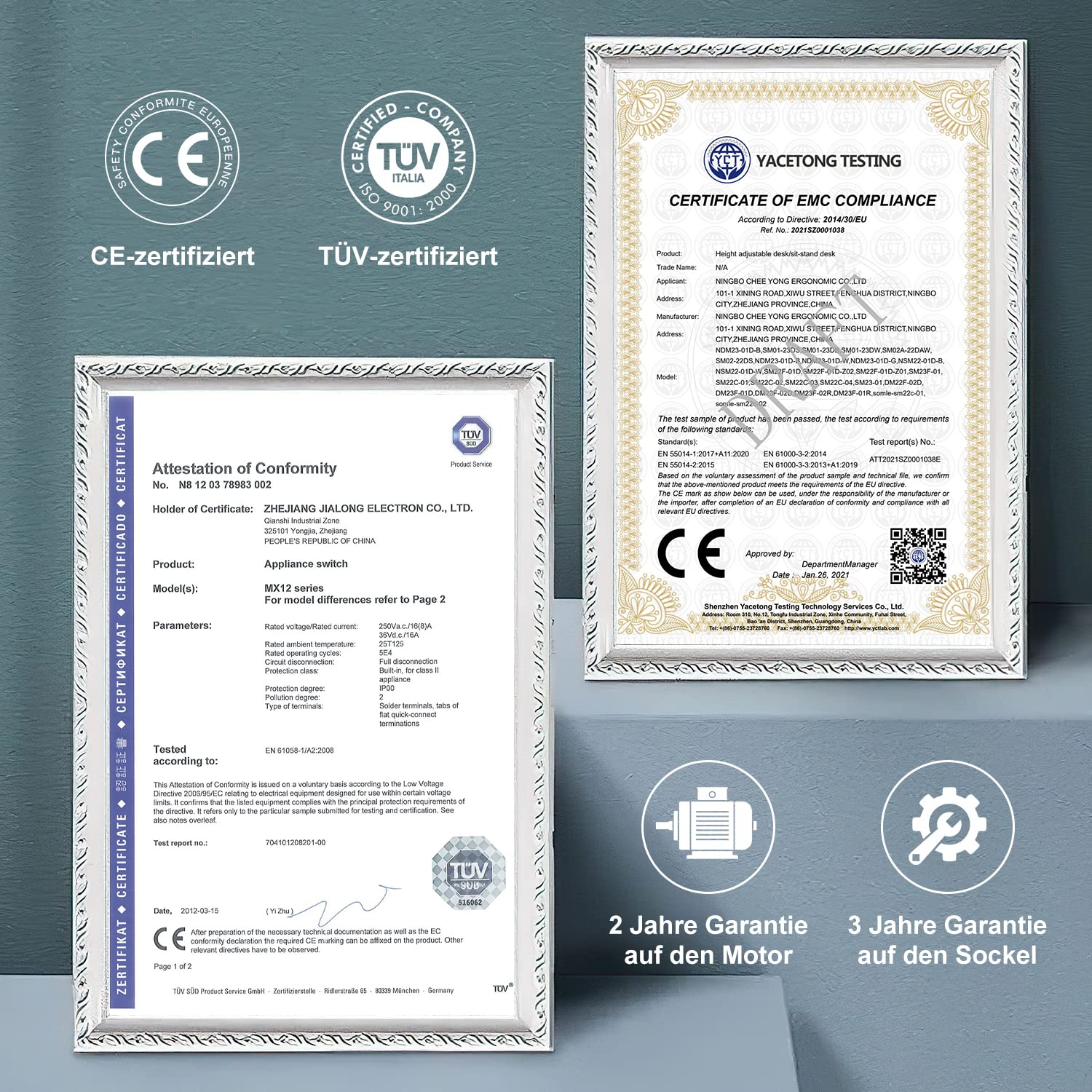 - Leistungsstarker Doppelmotor-Antrieb: Zwei synchronisierte Motoren sorgen für eine sanfte, schnelle (25 mm/s) und leise (<55 dB) Höhenverstellung. Das auf über 20'000 Zyklen getestete System garantiert höchste Langlebigkeit.