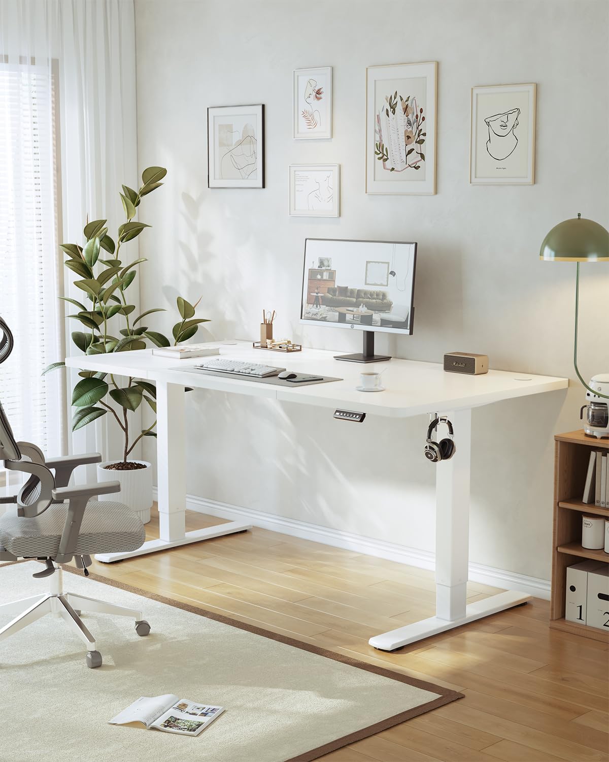 JUMMICO Steh-Sitz Schreibtisch Elektrisch - 160x70cm Weiss USB