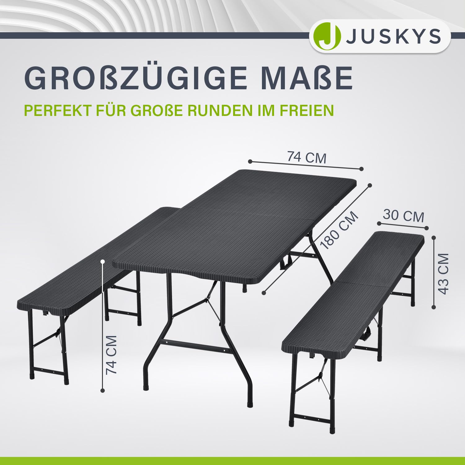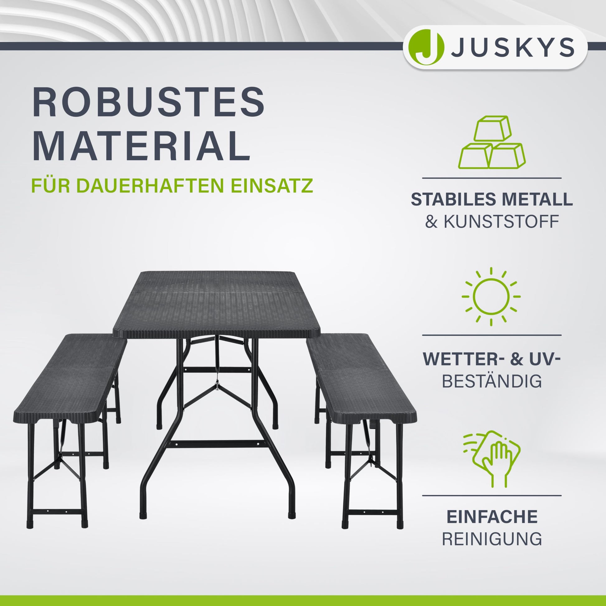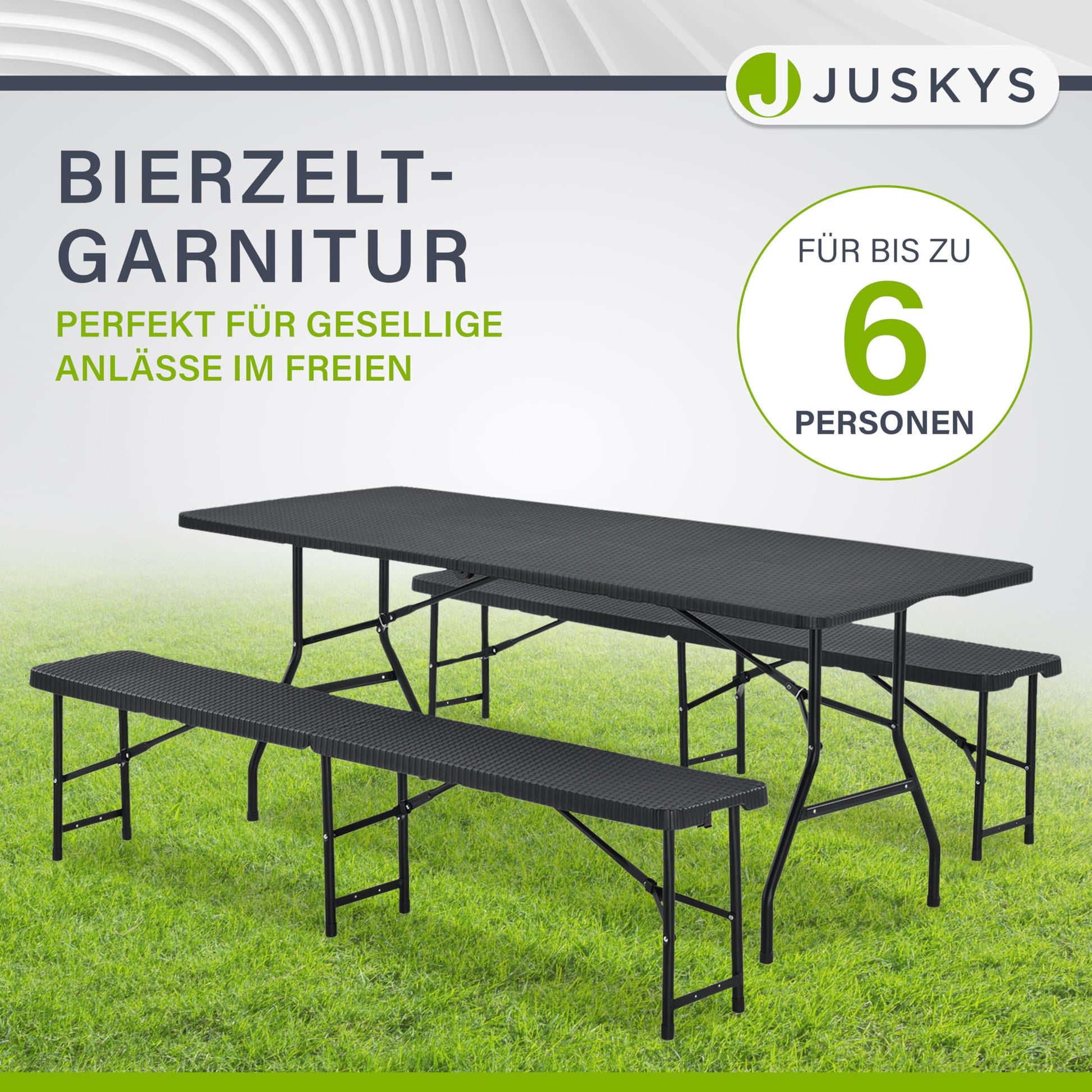 Juskys Bierzeltgarnitur Amberg Set 3-teilig klappbar Rattan-Optik