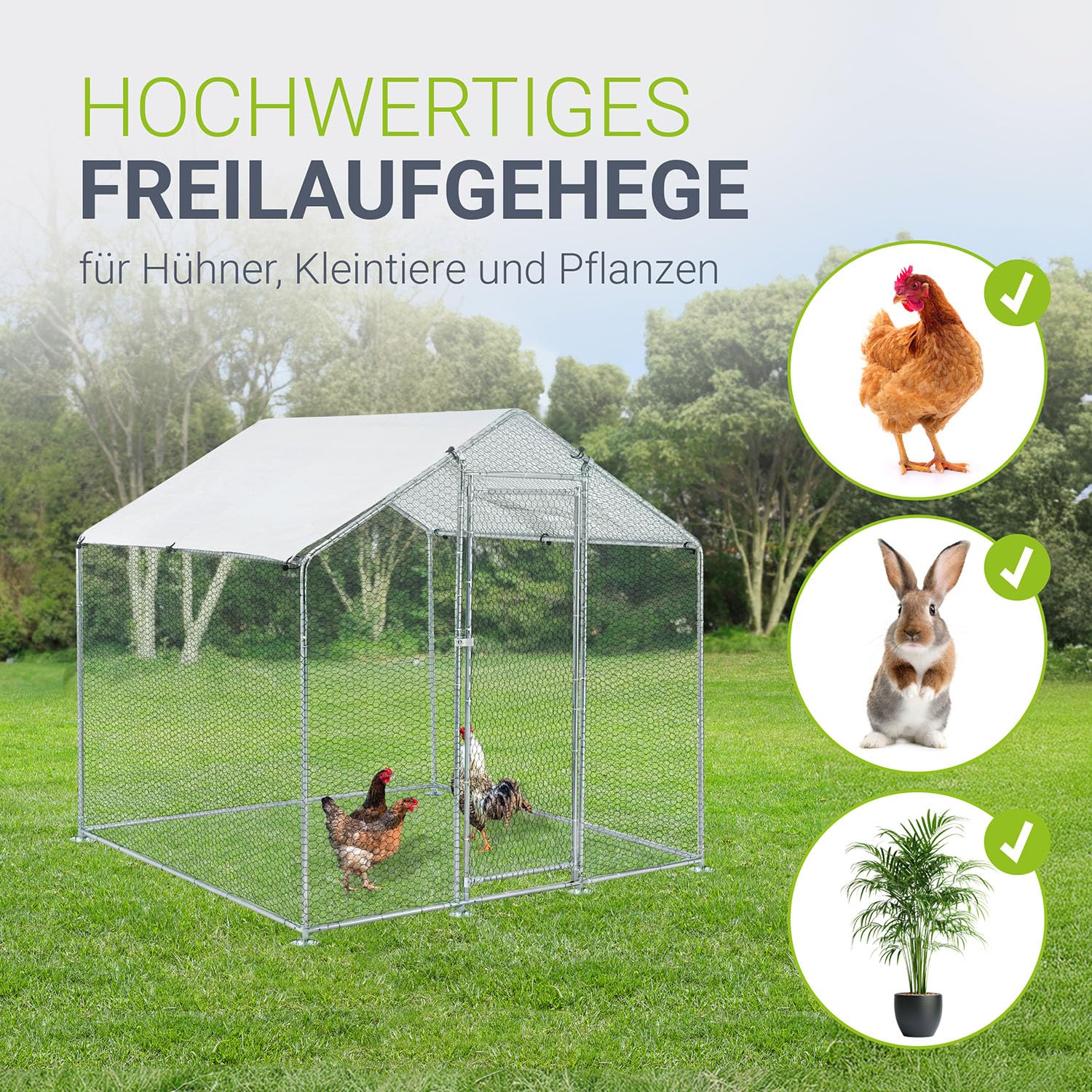 Schaffen Sie für Ihre Hühner, Gänse oder andere Kleintiere ein sicheres und geräumiges Zuhause im Freien. Dieses begehbare Freilaufgehege aus Metall bietet auf einer grosszügigen Fläche von 4 m² Schutz und Auslauf zugleich und kann auch zur Sicherung von Pflanzen genutzt werden.