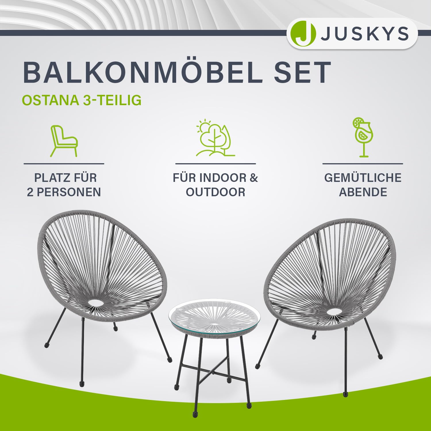 Juskys Ostana Balkonmöbel Set 3-tlg. Tisch & 2 Sessel Hellgrau