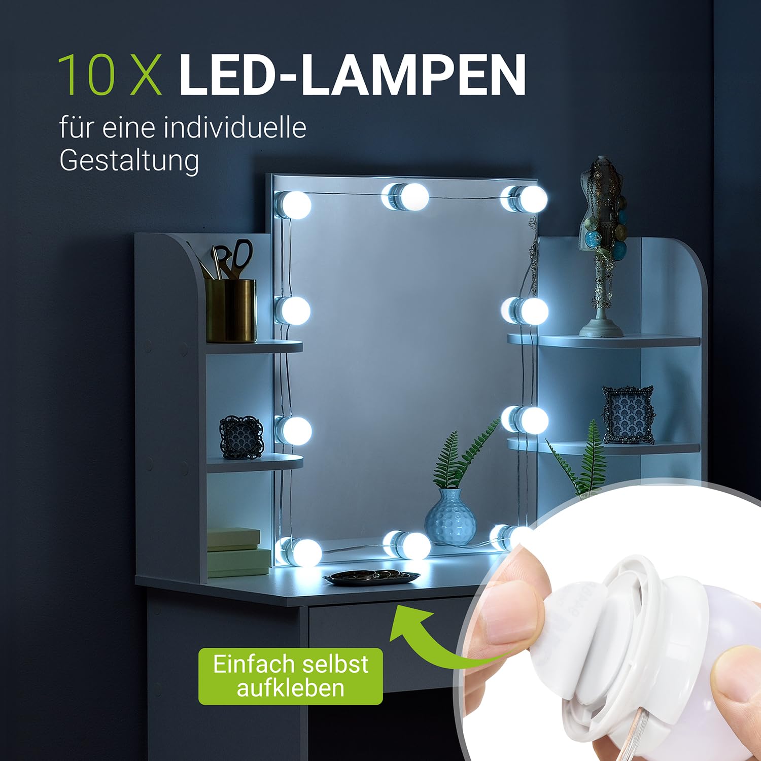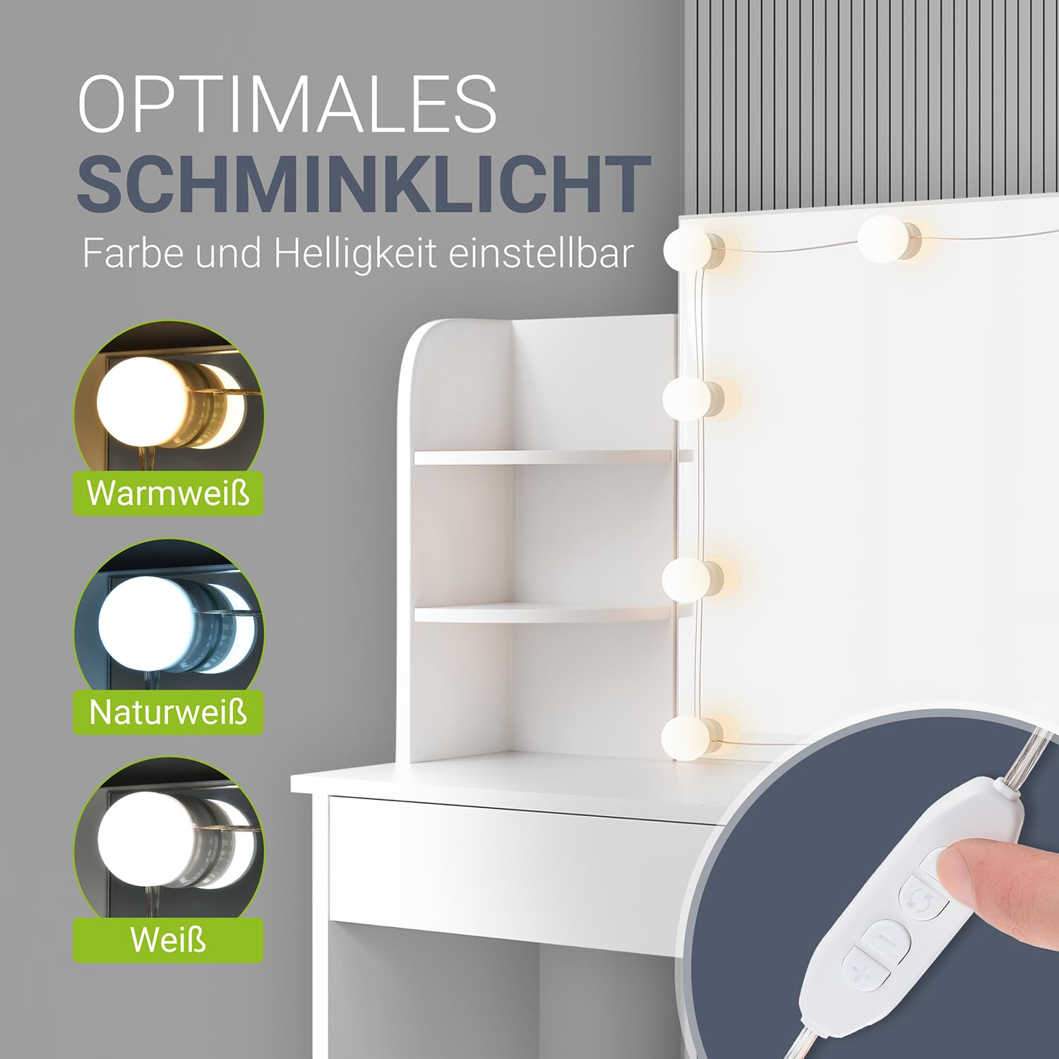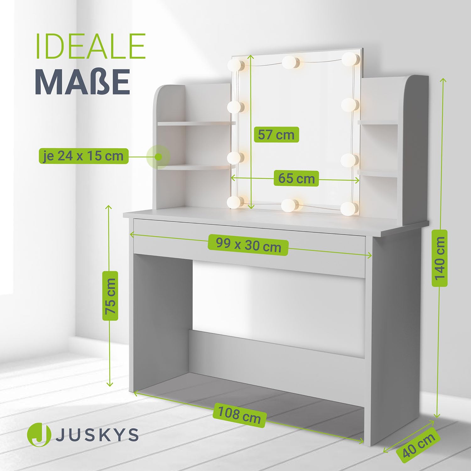 Juskys Schminktisch Bella LED Beleuchtung & Spiegel – Weiss
