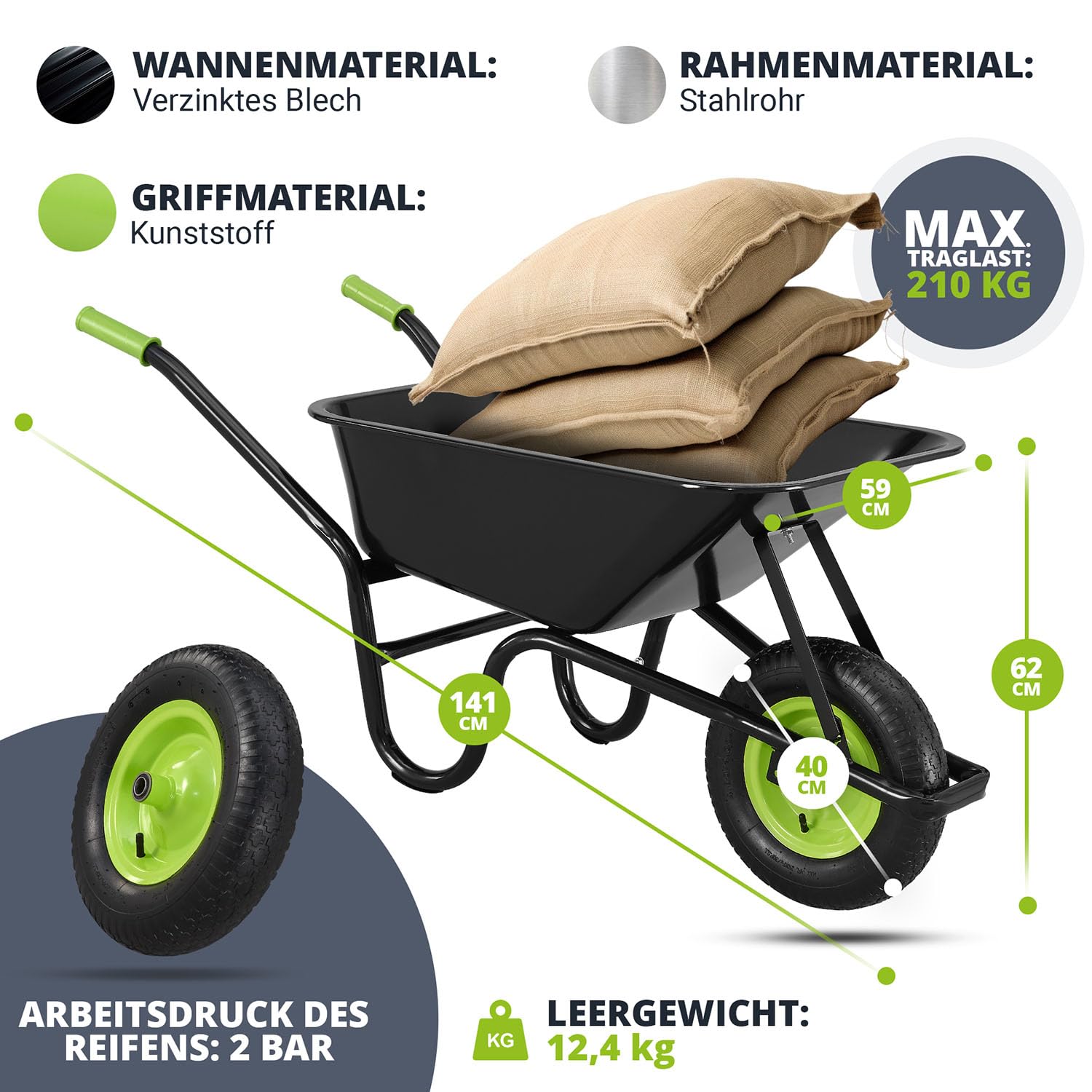 - Hohe Tragkraft: Belastbar bis zu 210 kg für schwere Lasten wie Erde oder Bauschutt.