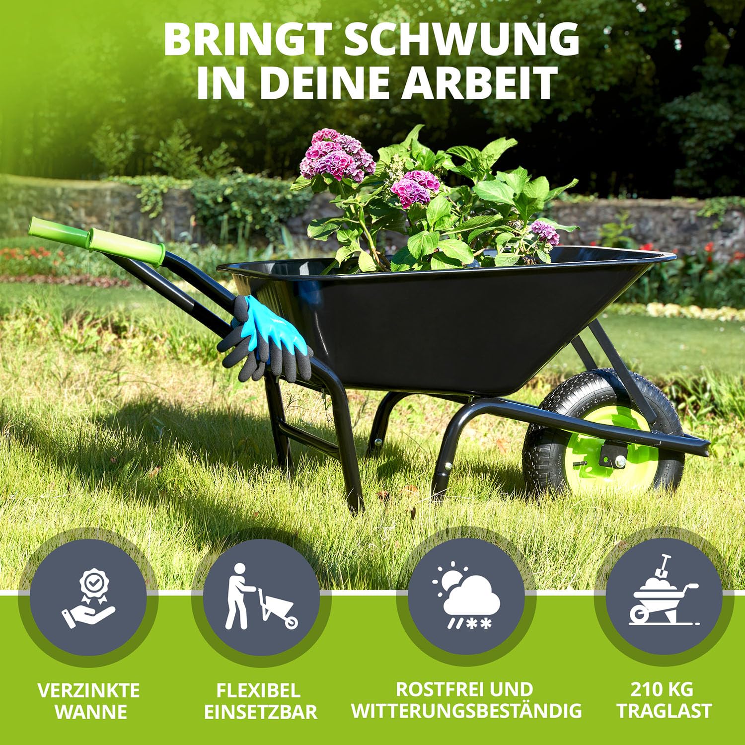Juskys Garden 100L Schubkarre - verzinkt, Luftreifen Schwarz