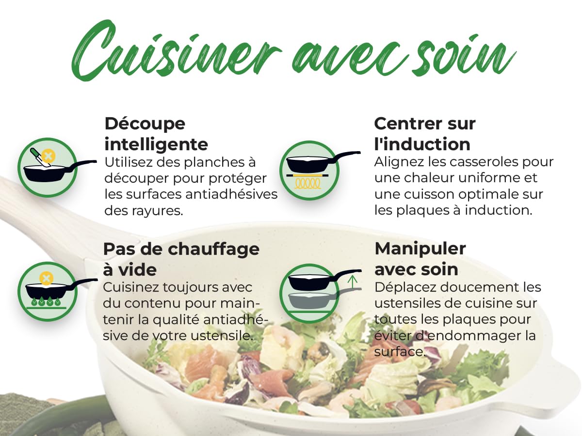 - Hochwertige Granit-Antihaftbeschichtung: Ermöglicht fettarmes Kochen ohne Anhaften und ist frei von PTFE und PFOA.