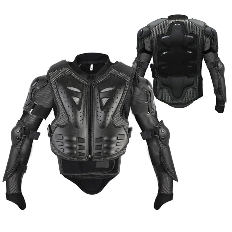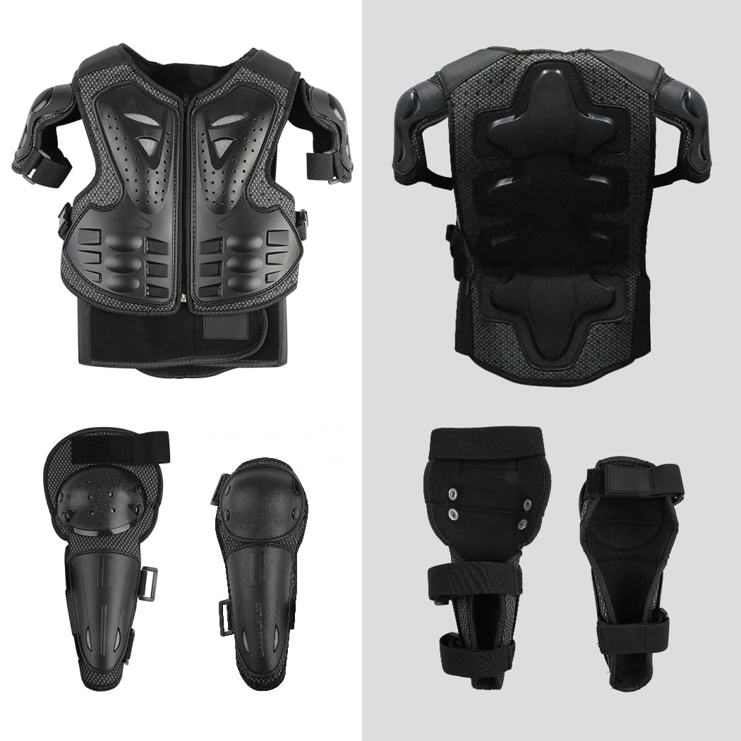 - Komplettes Schutz-Set: Beinhaltet eine Protektorenjacke (Brustpanzer), ein Paar Ellbogenschoner und ein Paar Knieschoner für einen vollständigen Rundumschutz.