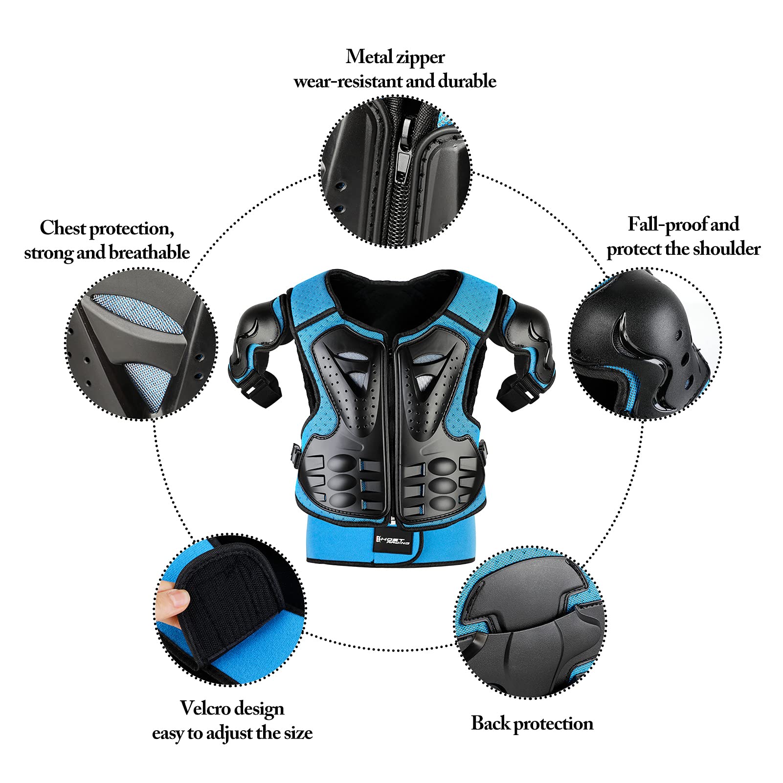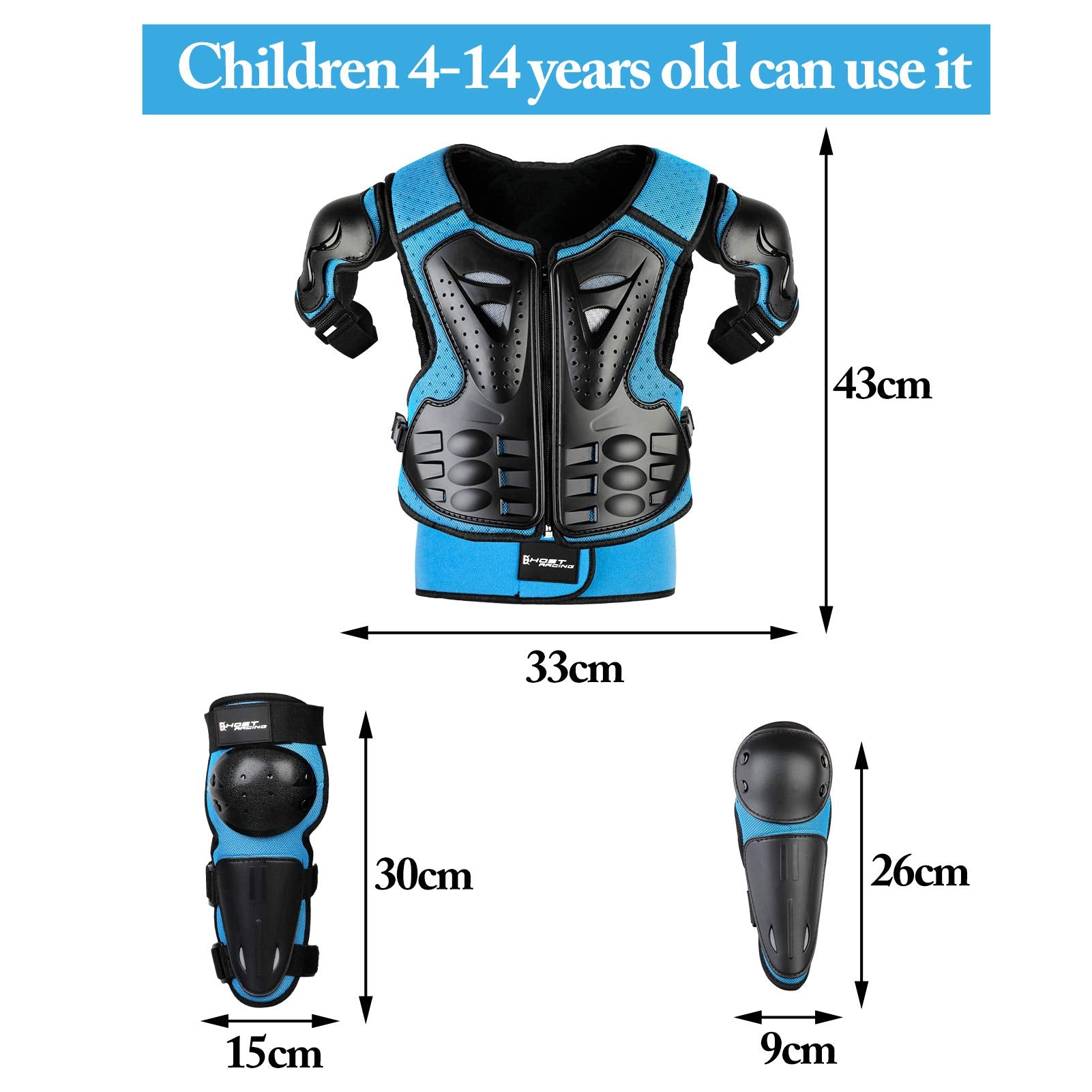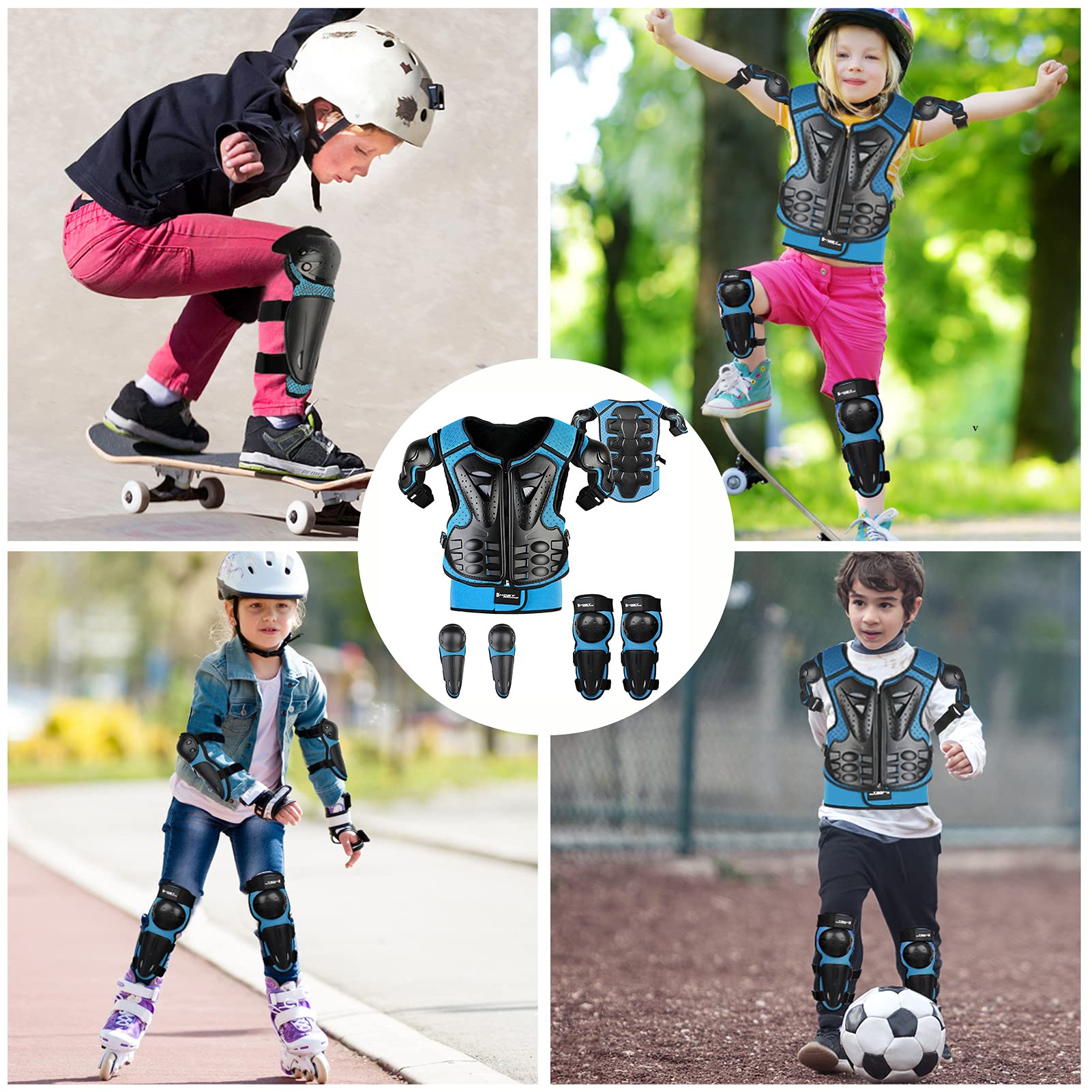 - Komplettes Schutzpaket: Das Set beinhaltet eine Protektorenjacke (Brust- und Rückenpanzer), ein Paar Knieschoner und ein Paar Ellbogenschoner für einen Rundumschutz.