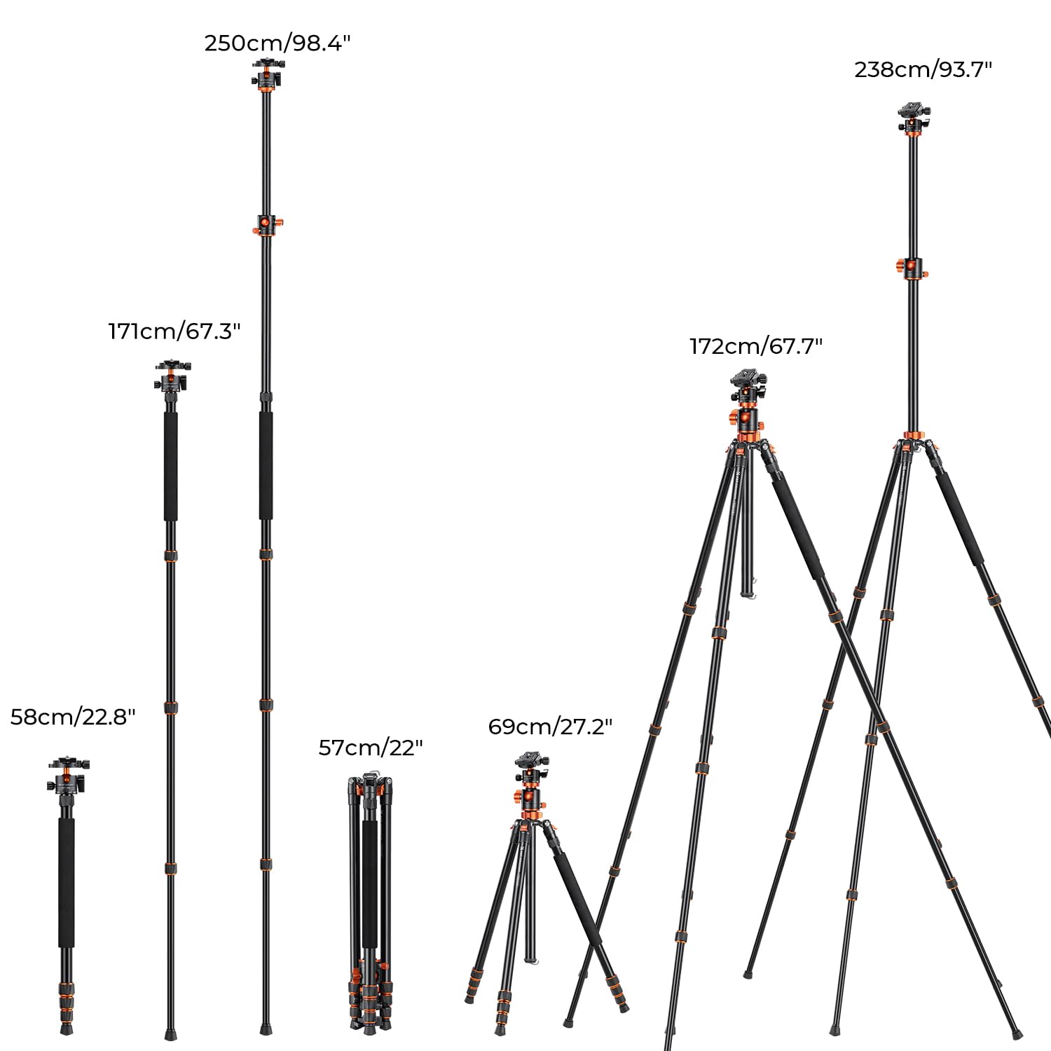 K&F Concept T254A8 Kamerastativ 238CM mit 90° Mittelsäule