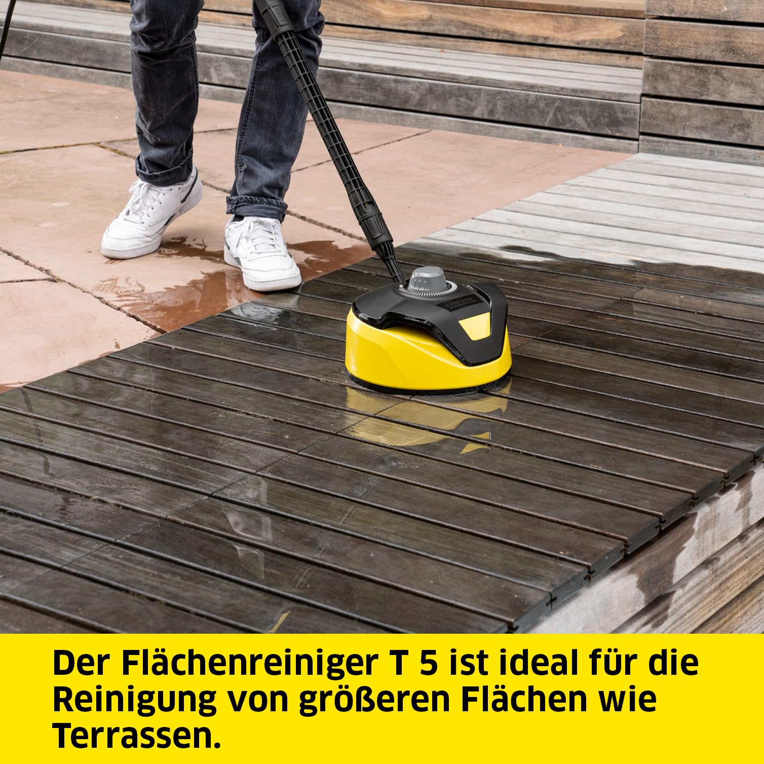 - Inklusive Home-Kit: Das Set beinhaltet den Flächenreiniger T 5 für eine spritzfreie und effiziente Säuberung grosser Flächen wie Terrassen sowie einen Liter Stein- und Fassadenreiniger.