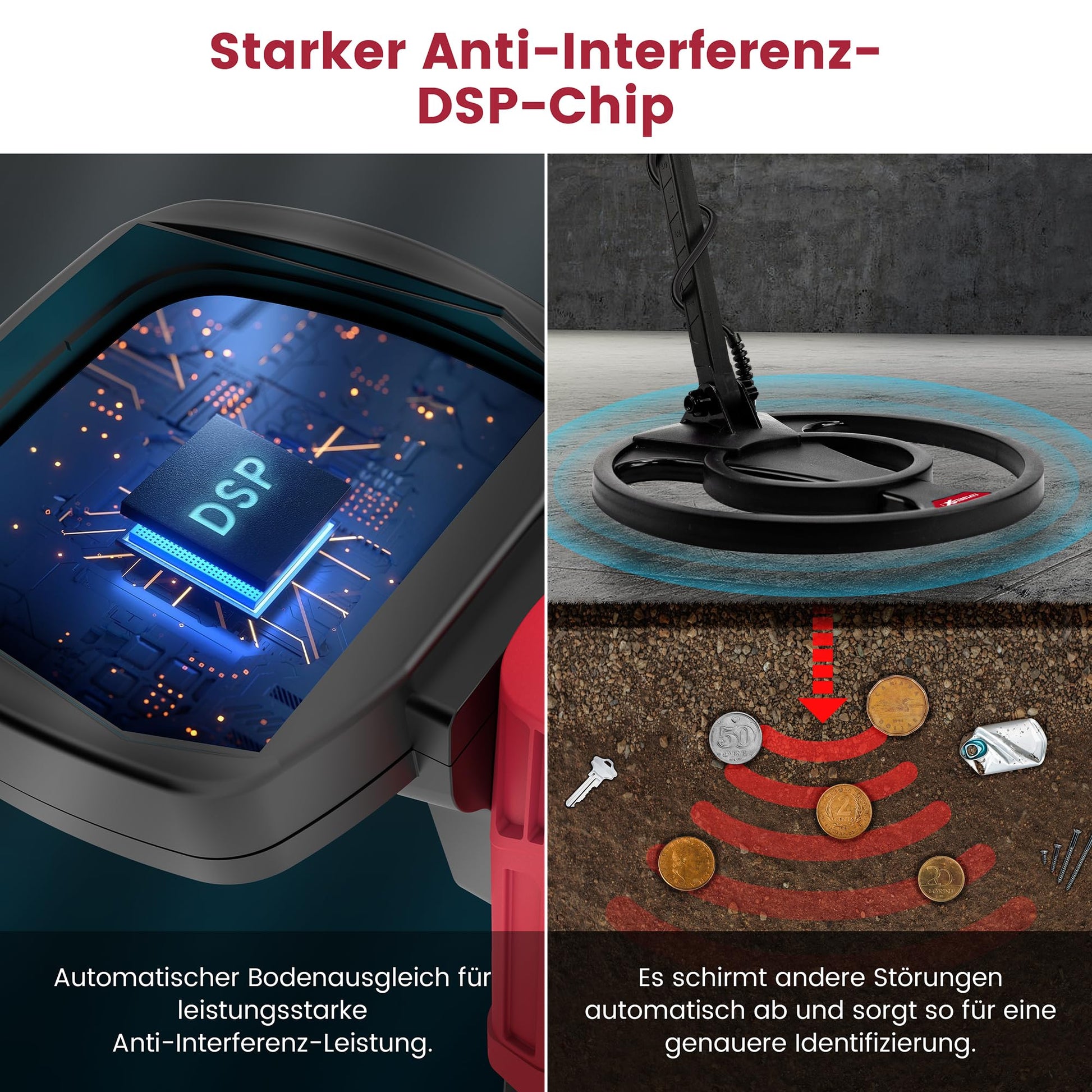 - Fortschrittliche 2025-Technologie: Ein optimierter DSP-Chip und ein verbessertes Bodenausgleichssystem sorgen für eine präzisere und zuverlässigere Ortung, indem sie störende Mineralisierungseffekte minimieren.
