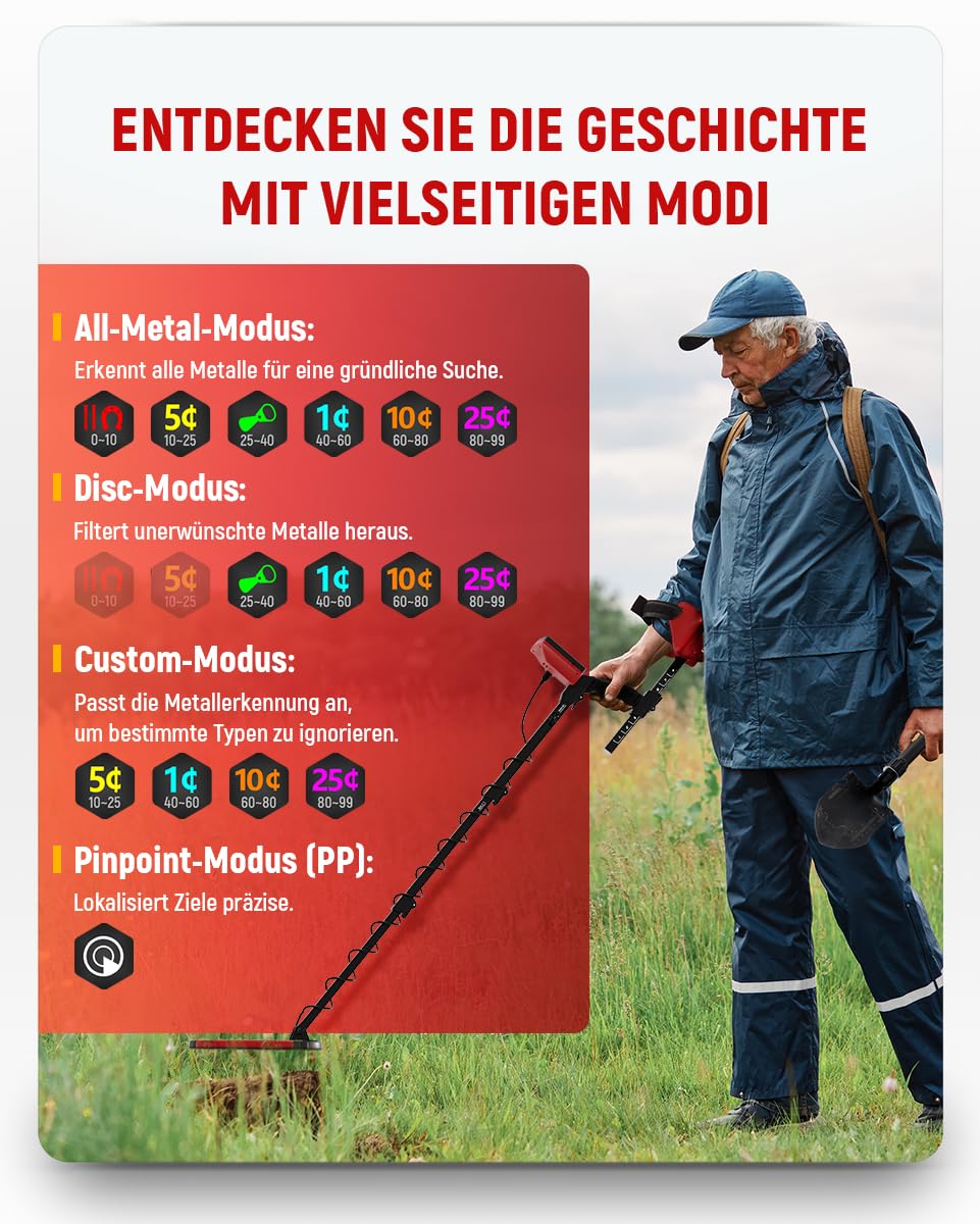 - Umfassendes Zubehör: Im Lieferumfang sind hochwertige Kopfhörer und eine praktische Grabungsschaufel enthalten, damit Sie sofort loslegen können.