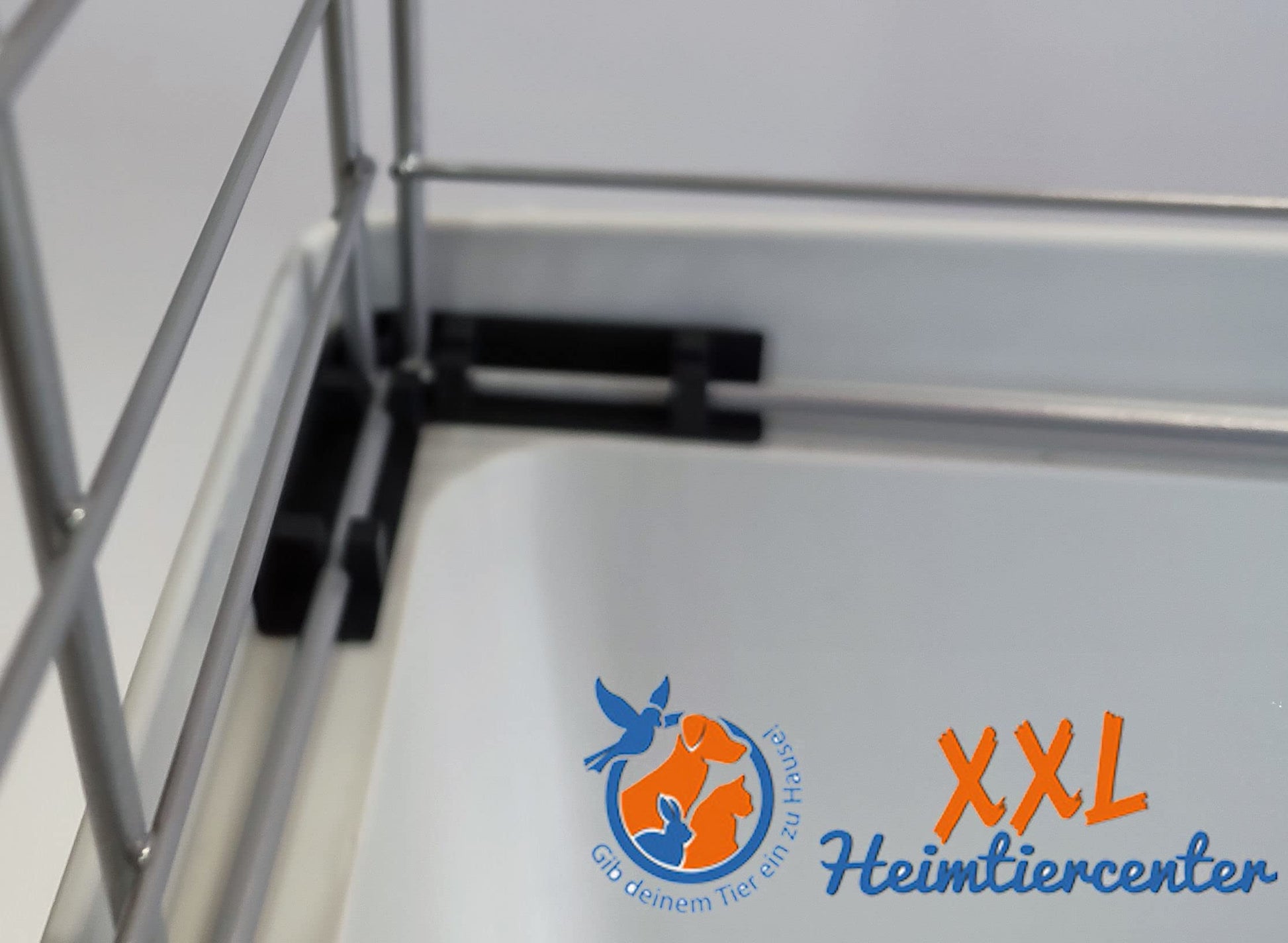 Ein besonderer Vorteil ist die einfache Erweiterbarkeit. Klappen Sie eine Gitterseite komplett nach oben, um einen weiteren Käfig oder einen permanenten Auslauf anzuschliessen. So können Sie die Lebensfläche für Ihre Tiere bei Bedarf unkompliziert verdoppeln.
