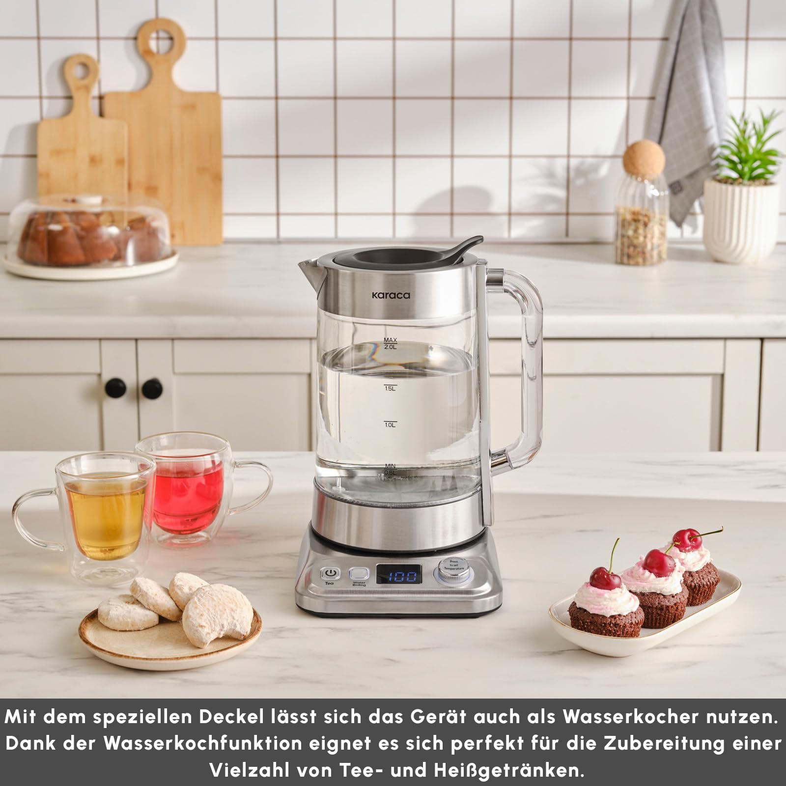 - Grosszügiges Fassungsvermögen: Mit einem 2-Liter-Wasserbehälter und einer 0,8-Liter-Teekanne versorgen Sie mühelos die ganze Familie oder Ihre Gäste, ohne ständig nachfüllen zu müssen.