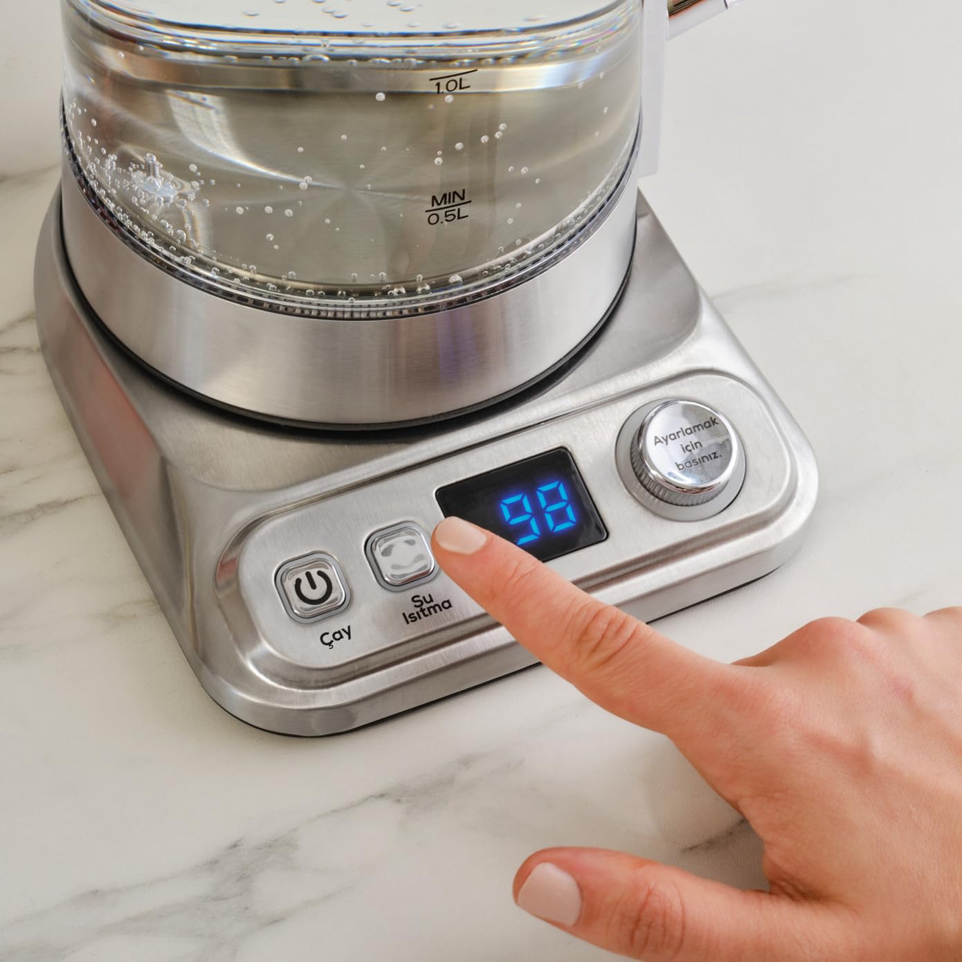 - Präzise Temperaturwahl: Wählen Sie aus vier vordefinierten Stufen (89°C, 91°C, 93°C, 95°C), um das Aroma Ihres Tees optimal zu entfalten und ihn genau nach Ihrem Geschmack zuzubereiten.