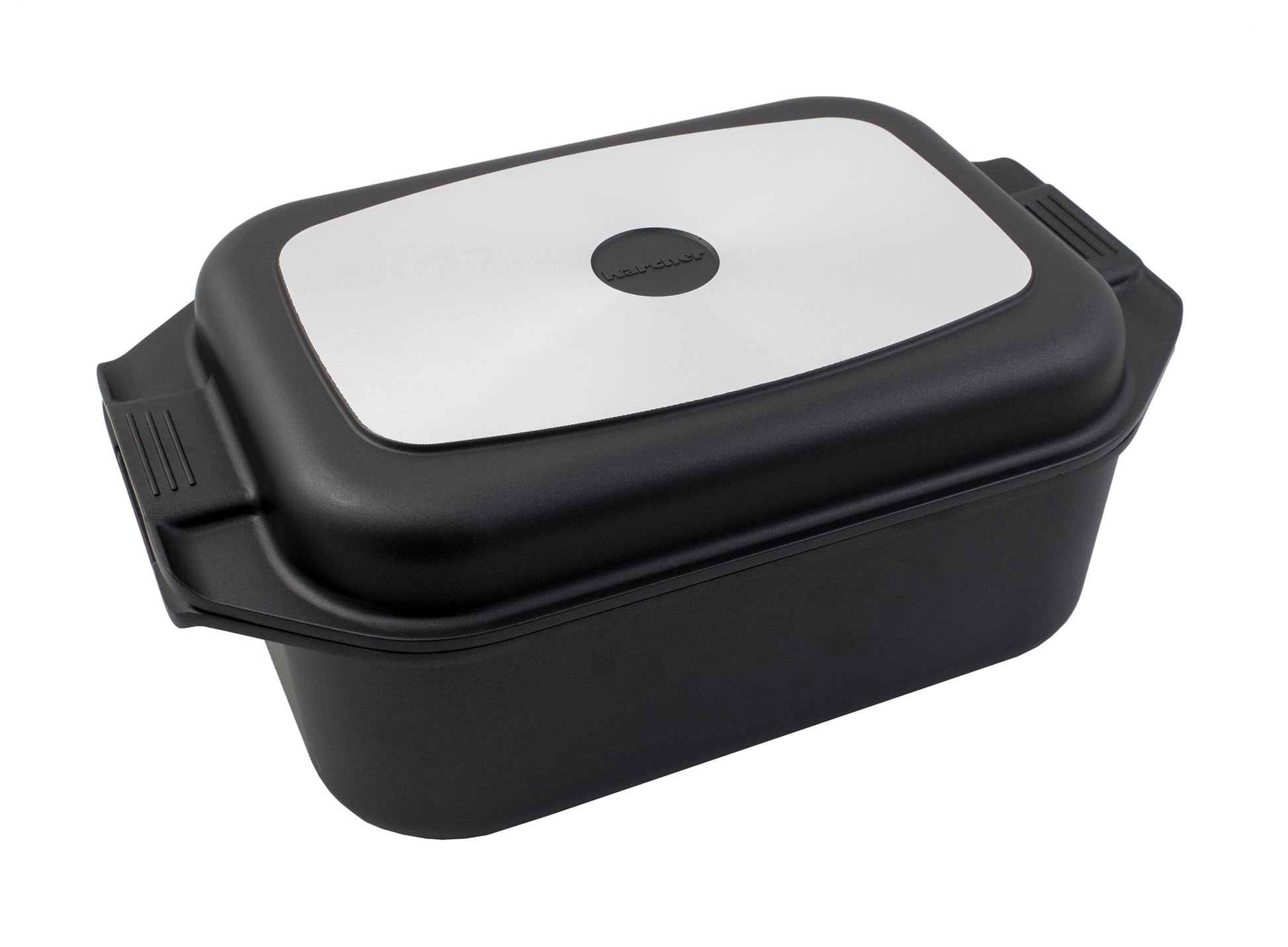 Aluguss zeichnet sich durch eine exzellente und sehr gleichmässige Wärmeverteilung aus, was zu perfekten Garergebnissen führt. Im Vergleich zu Gusseisen ist Aluguss deutlich leichter, was die Handhabung des 8,7-Liter-Bräters erheblich vereinfacht, ohne bei der Wärmespeicherung grosse Abstriche machen zu müssen.