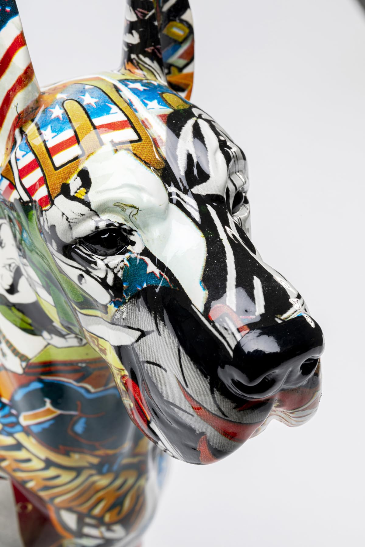 Setzen Sie ein farbenfrohes Statement mit der Deko-Figur Maddox. Dieser auffällige Hund im unverkennbaren Comic-Stil ist ein garantierter Blickfang und verleiht jedem Raum eine humorvolle und künstlerische Note.