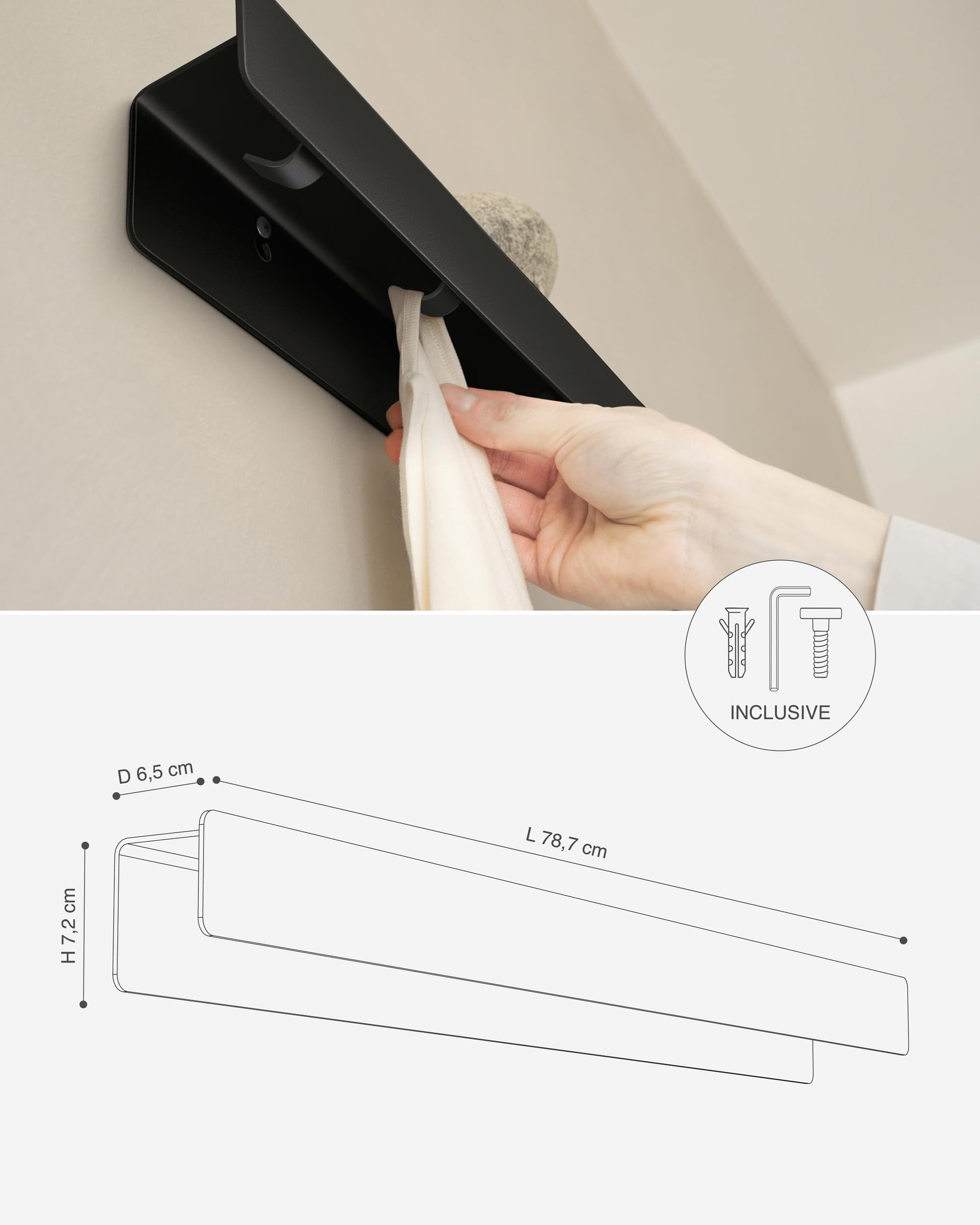- Integrierte Ablage: Oberhalb der Haken befindet sich eine praktische Ablagefläche, die sich ideal für Hüte, Schlüssel oder als dezente Bühne für Ihre Lieblingsdekoration eignet.