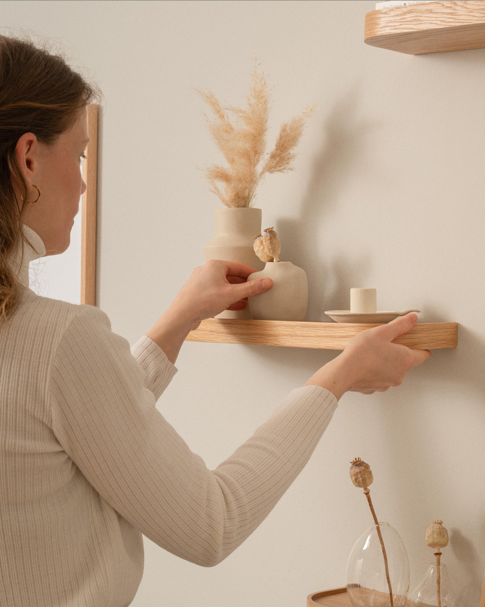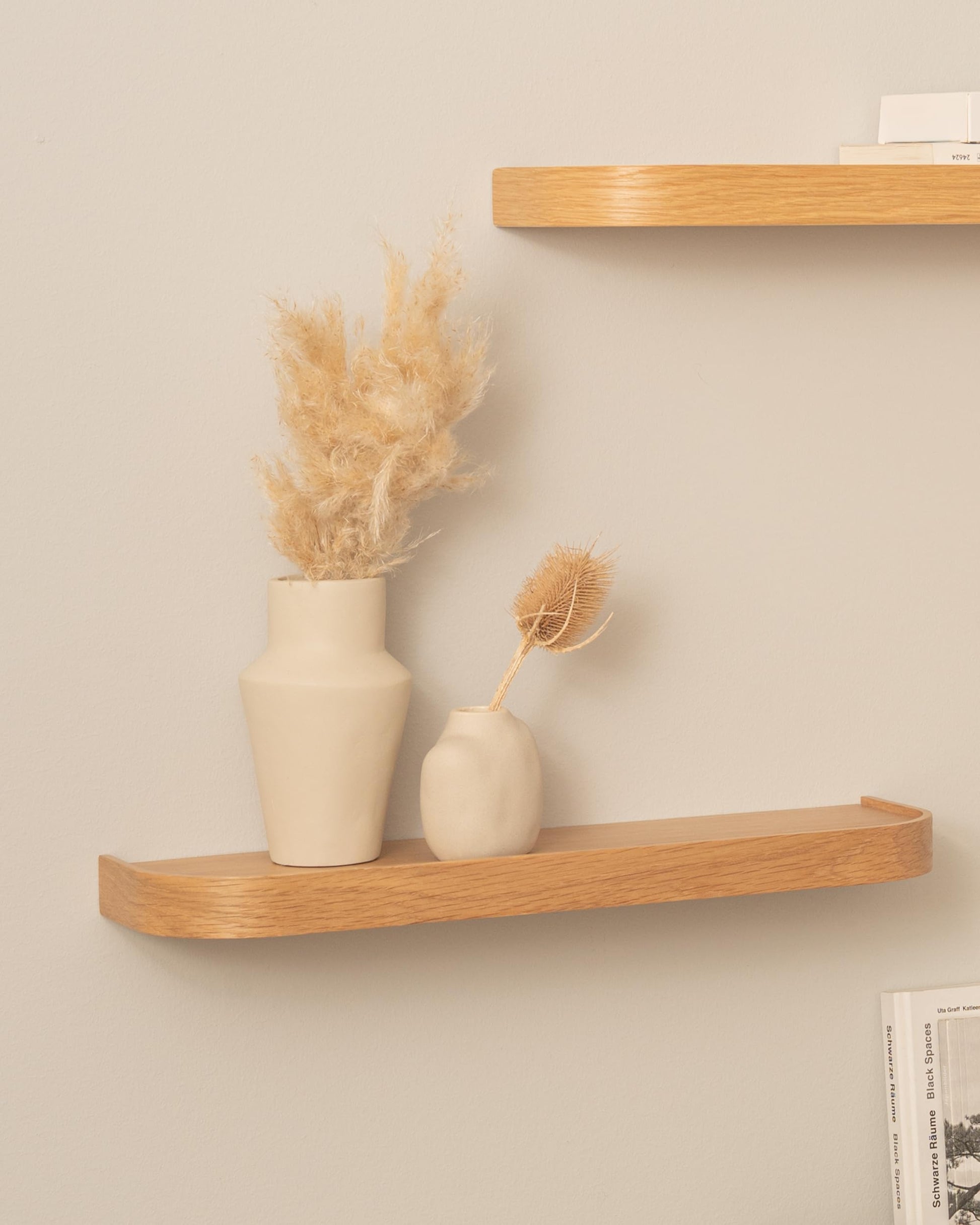 Dank des minimalistischen Designs sind die Regale extrem vielseitig. Nutzen Sie sie im Wohnzimmer als Bücherregal, in der Küche für Gewürze, im Flur als Schlüsselablage, im Bad für Kosmetika oder im Schlafzimmer für persönliche Dekoartikel. Die schwebende Optik lässt jeden Raum grösser und aufgeräumter wirken.