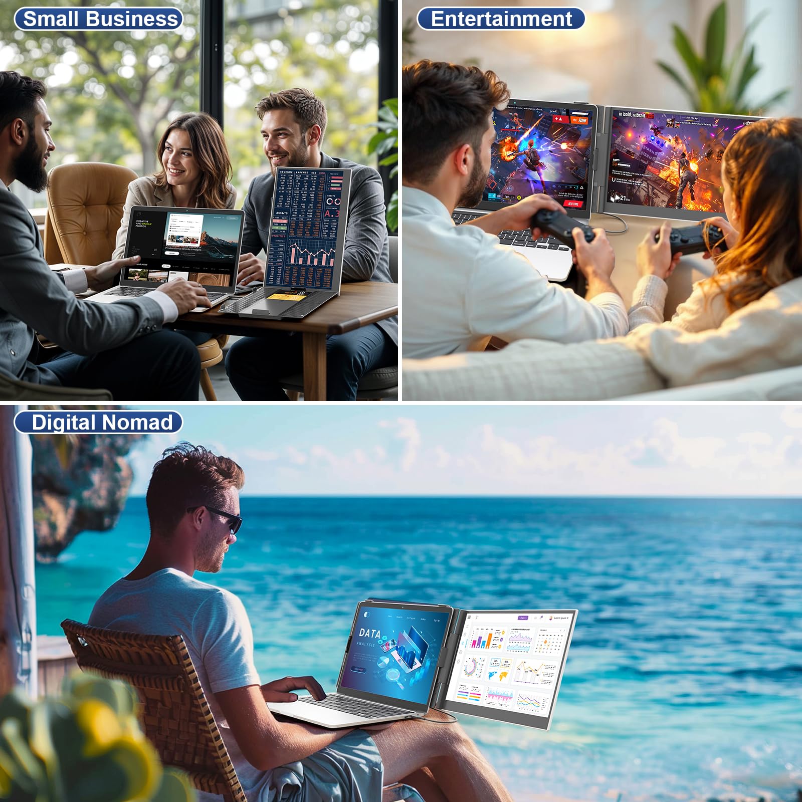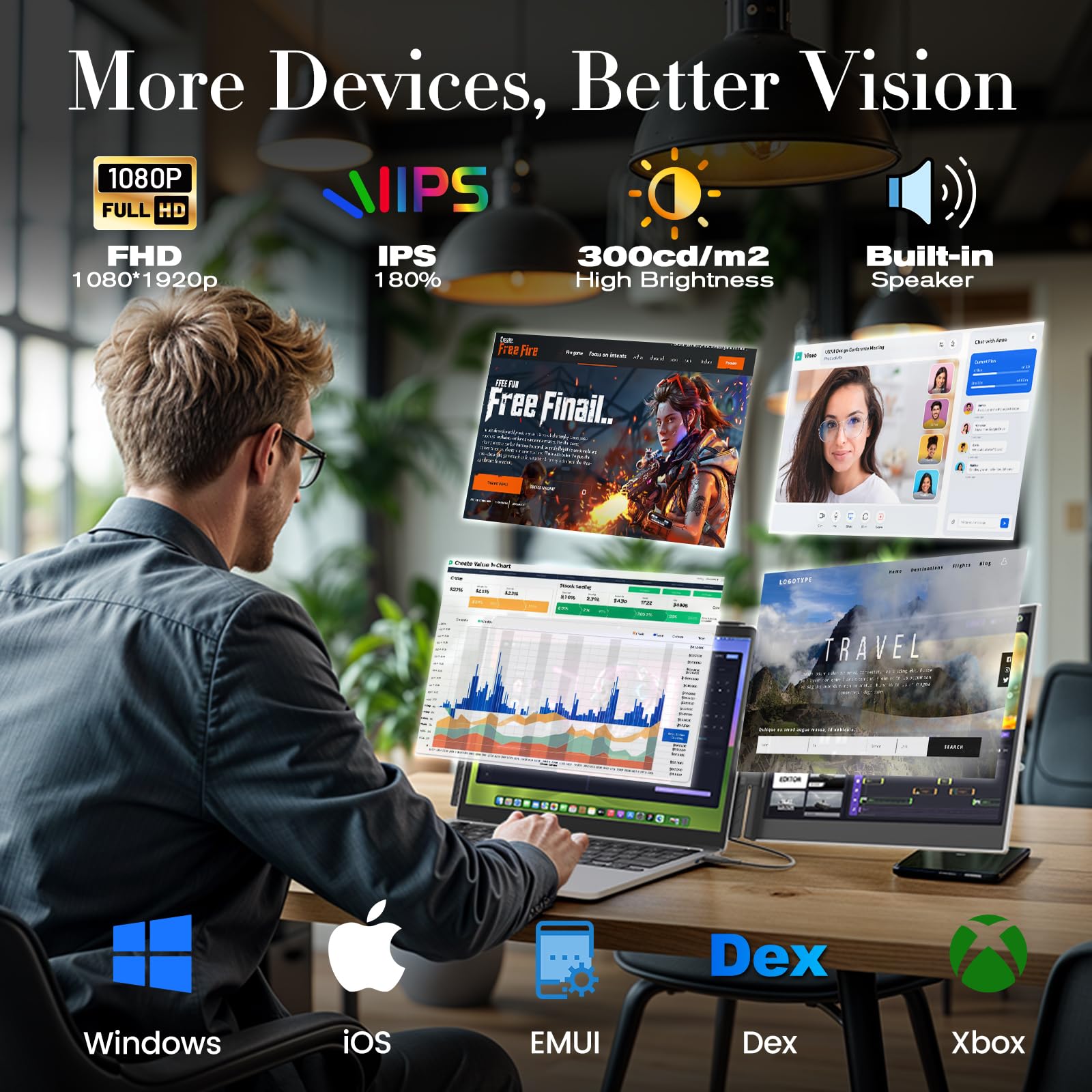 - Einfache Konnektivität: Dank Plug-and-Play über Typ-C, HDMI oder USB-A ist keine Treiberinstallation nötig. Der Monitor ist sofort einsatzbereit und universell kompatibel mit Laptops von 13" bis 17,3".