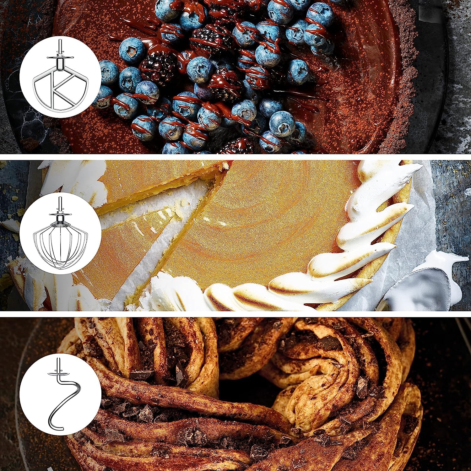 - Umfangreiches Zubehör-Set: Beinhaltet ein 3-teiliges Patisserie-Set bestehend aus K-Haken, Ballonschneebesen und Knethaken für vielseitige Anwendungen.