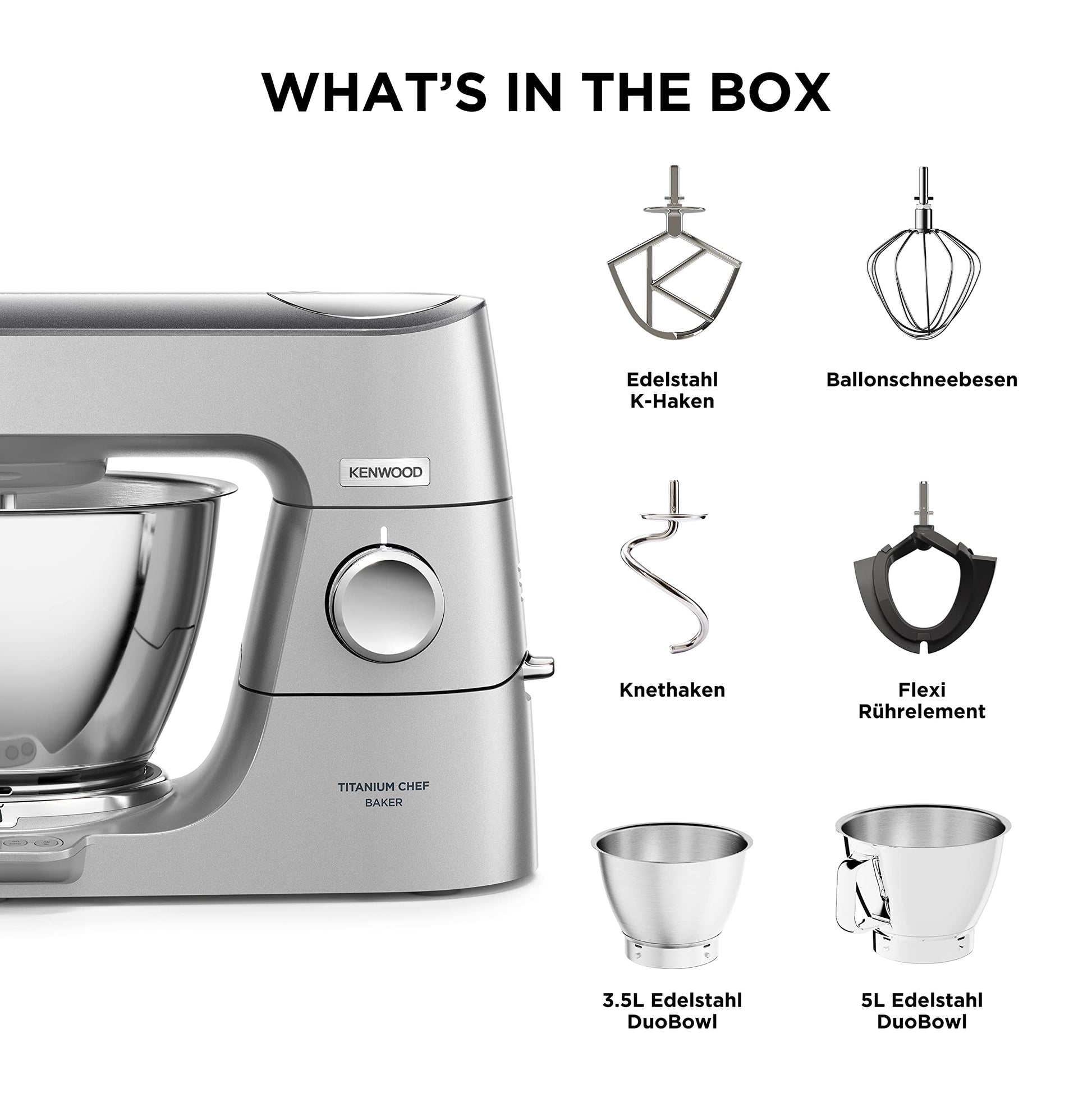 Die Kenwood Titanium Chef Baker Küchenmaschine ist der ideale Partner für alle Backbegeisterten und vereint einen kraftvollen Motor mit intelligenten Funktionen für makellose Ergebnisse bei jedem Rezept.