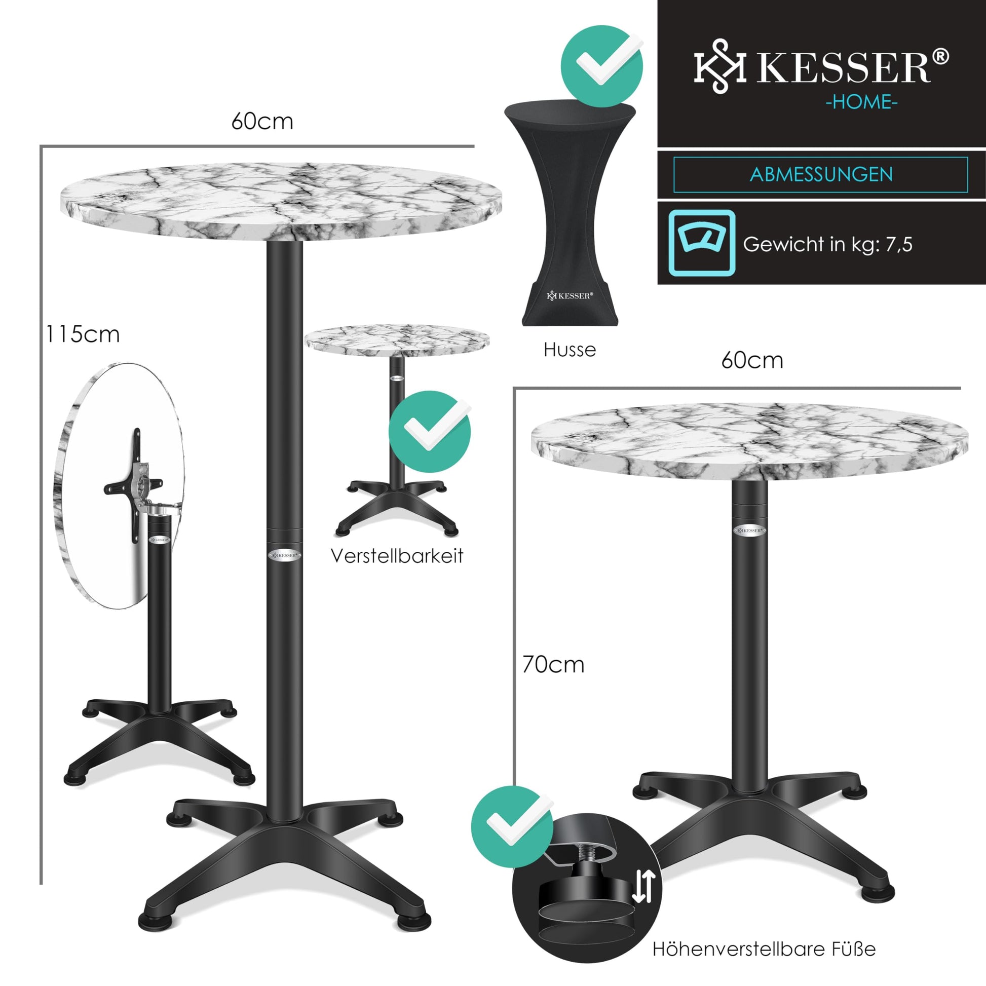 KESSER 2in1 Klapp-Stehtisch höhenverstellbar – Husse Marmor