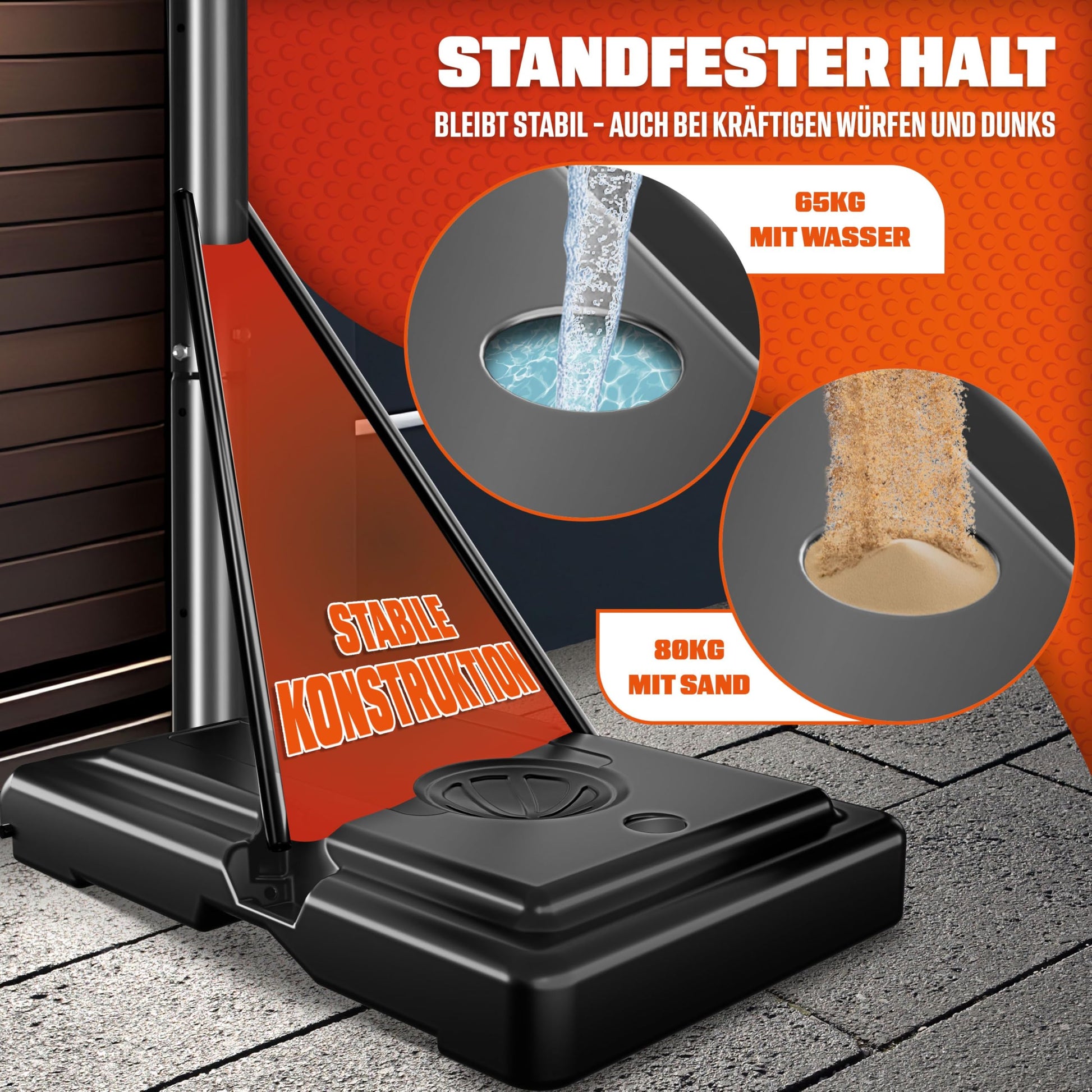 Wie wird der Basketballkorb stabilisiert und was ist besser: Wasser oder Sand?