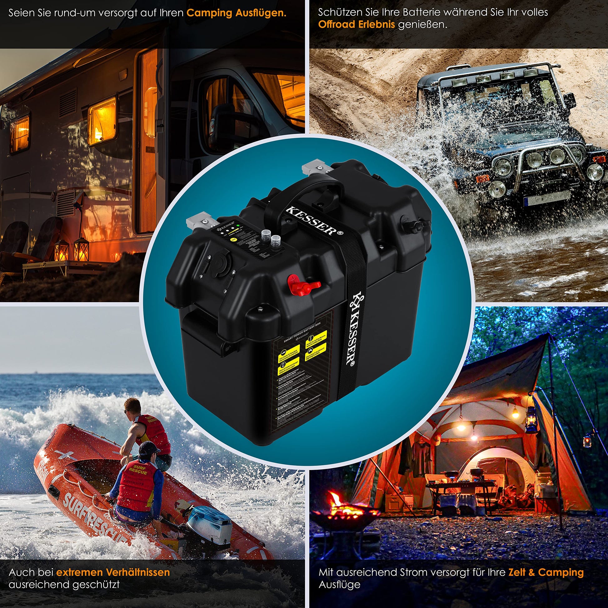 KESSER Batteriebox für Bootsmotor Aussenborder Wohnmobil USB 12V Schwarz