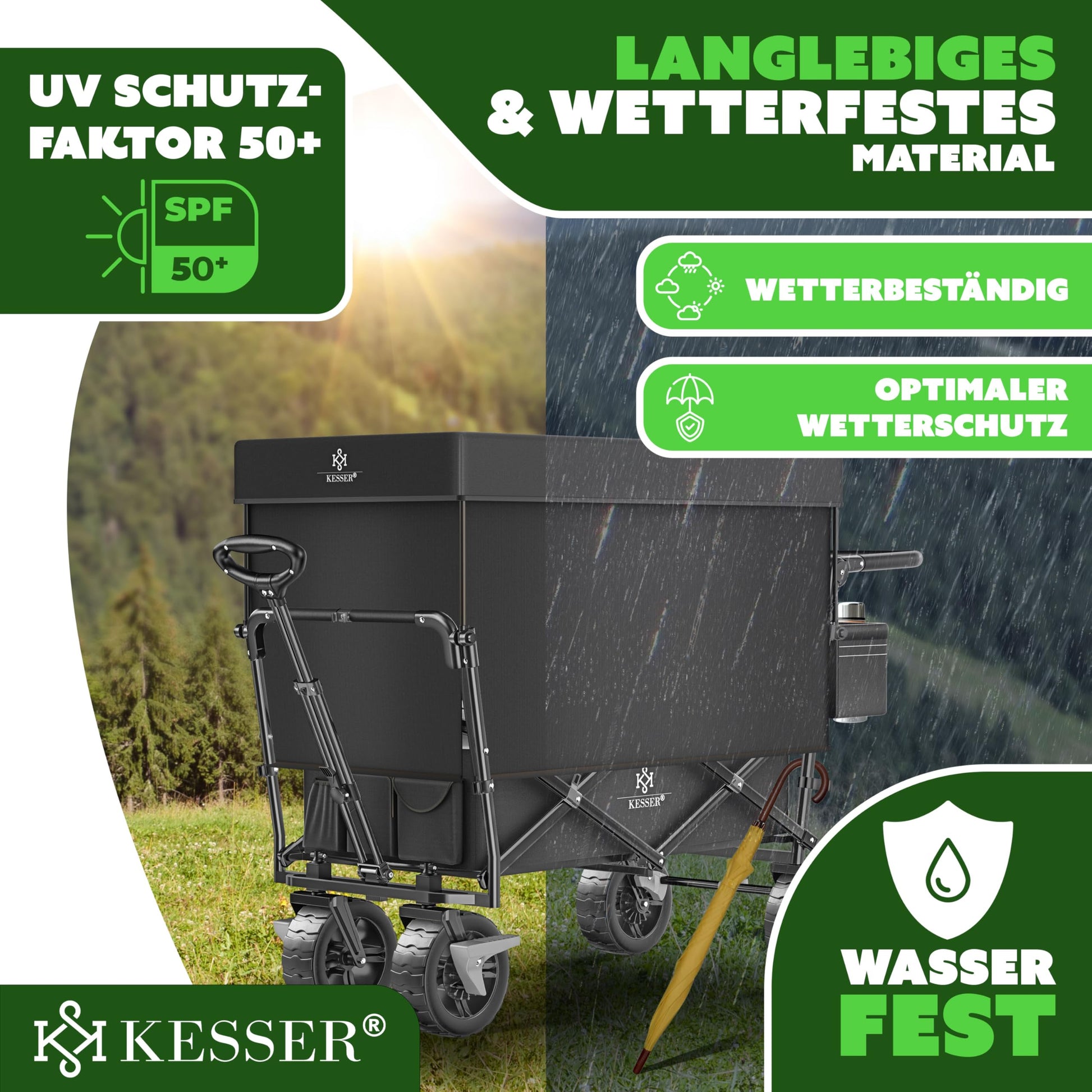 KESSER Bollerwagen GT9000 faltbar mit Dach – Hartgummi-Räder