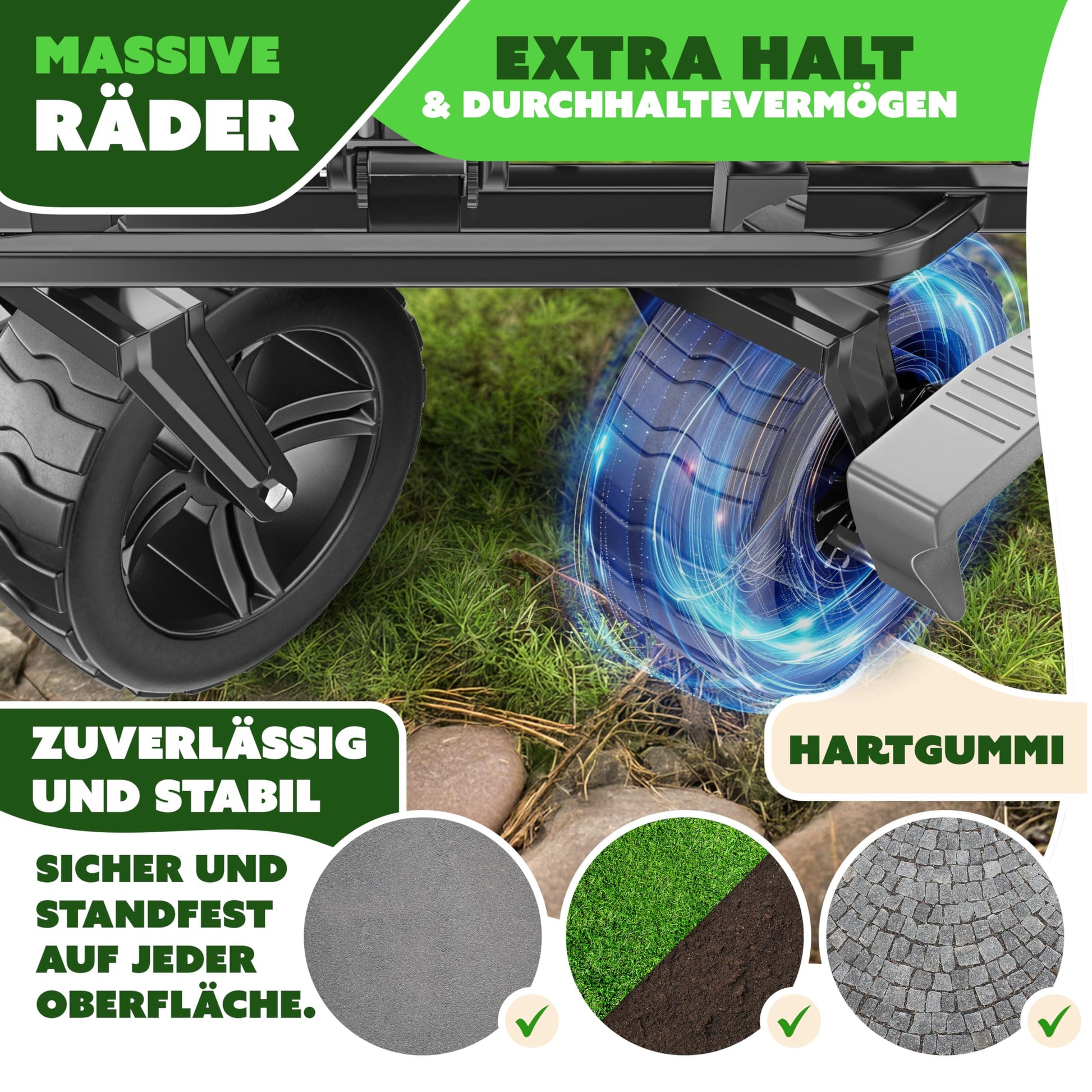 Dieser faltbare Handwagen ist die ideale und robuste Transportlösung für Ausflüge, Einkäufe und Freizeitaktivitäten. Mit seiner durchdachten Konstruktion und der umfangreichen Ausstattung sind Sie für jedes Vorhaben bestens gerüstet.