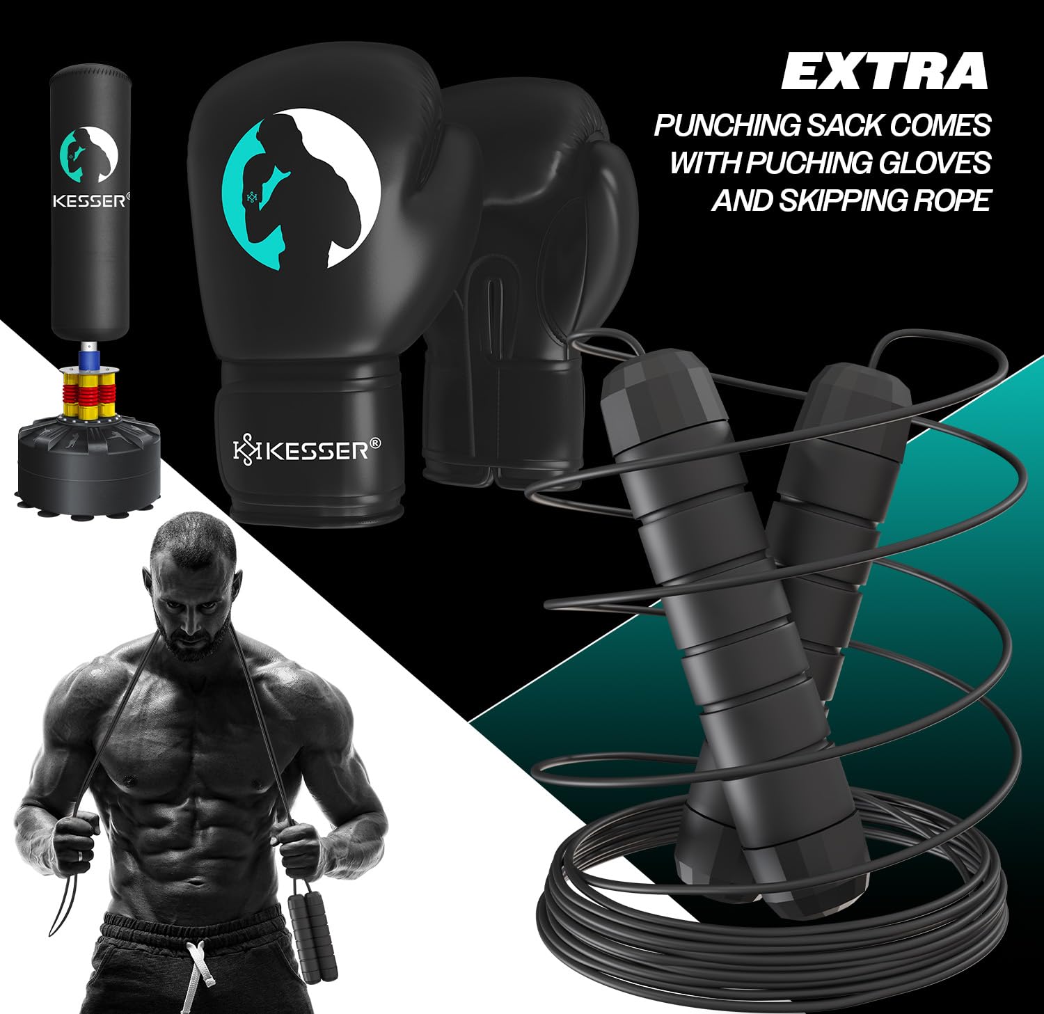 - Komplettes Zubehör: Inklusive passender Boxhandschuhe und einem Springseil für Ihr Aufwärmtraining.