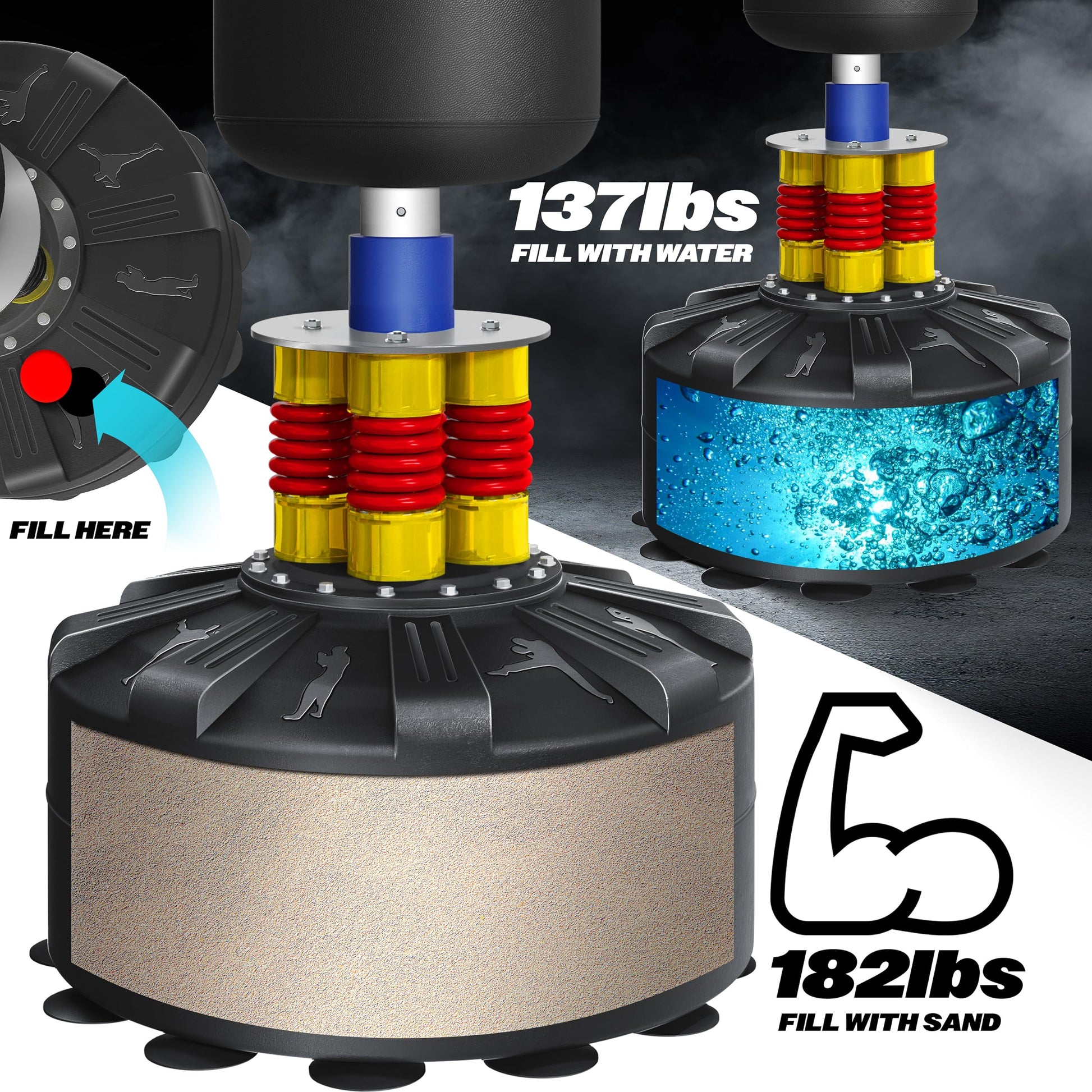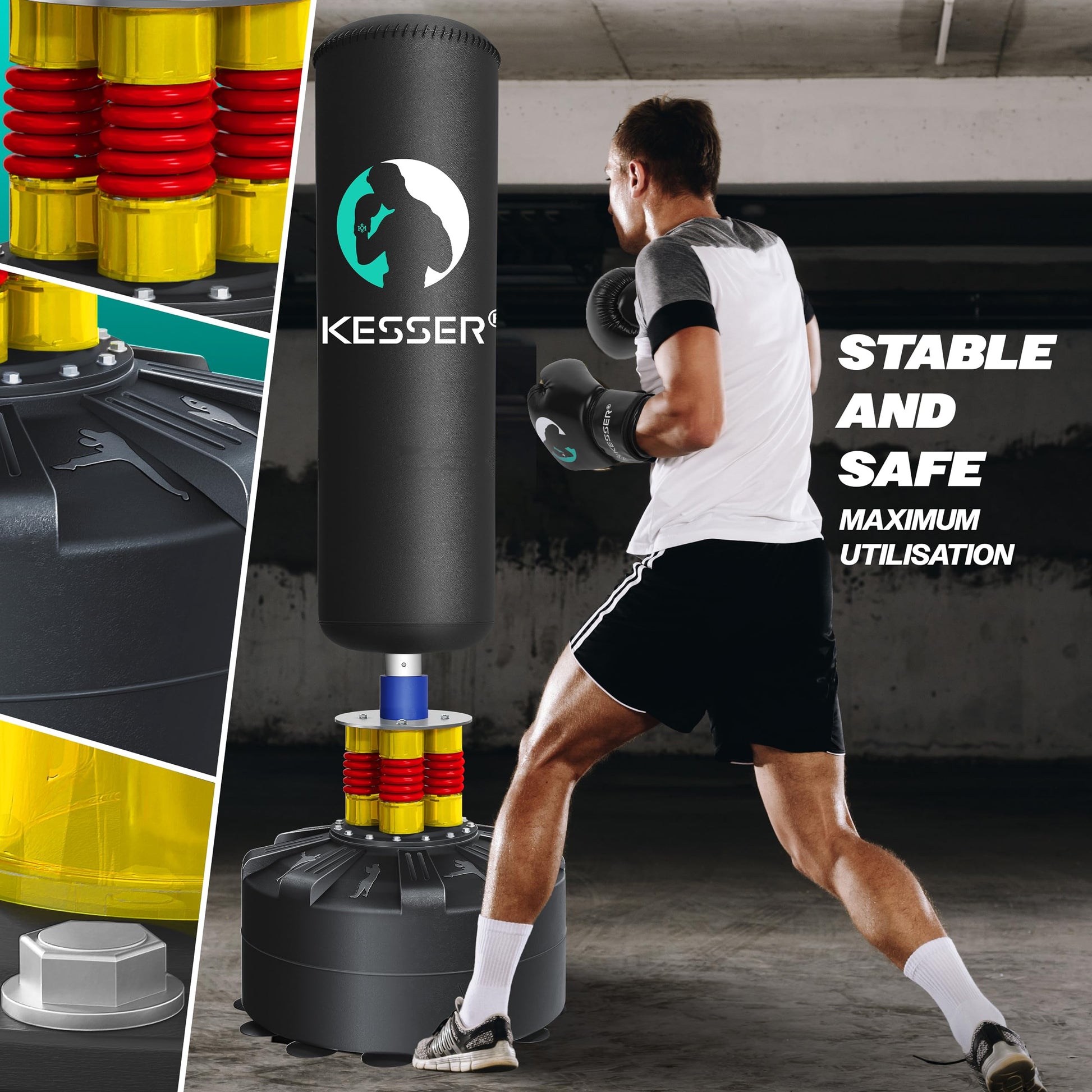 Dieses Set passt sich perfekt an Ihr Trainingslevel an. Egal, ob Anfänger oder fortgeschrittener Athlet, durch die anpassbare Füllung des Standfusses bestimmen Sie die Intensität Ihres Workouts selbst. Trainieren Sie eine Vielzahl von Kampfsportarten wie Kickboxen, Karate oder MMA und verbessern Sie gleichzeitig Ihre allgemeine Fitness.