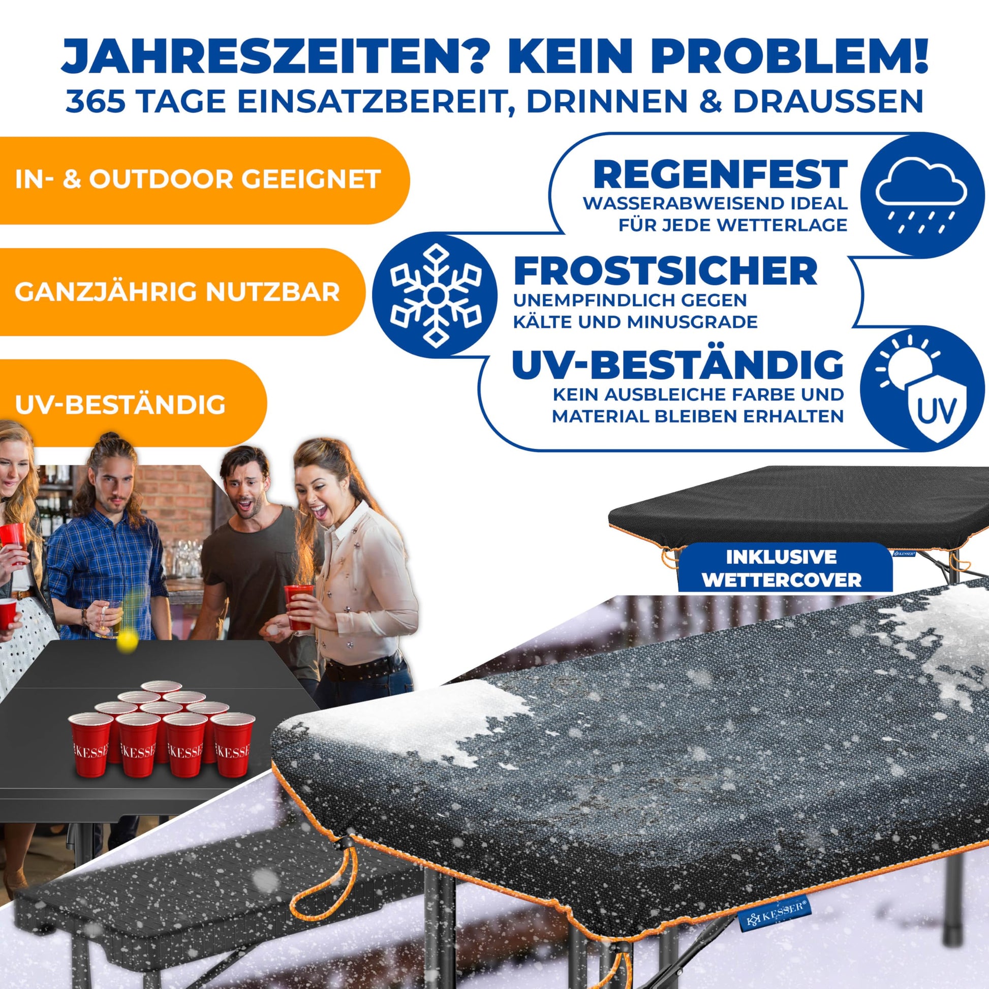 - Inklusive Schutzhülle: Ein mitgeliefertes Wettercover schützt den Tisch zuverlässig vor Regen und UV-Strahlung, wenn er nicht in Gebrauch ist.