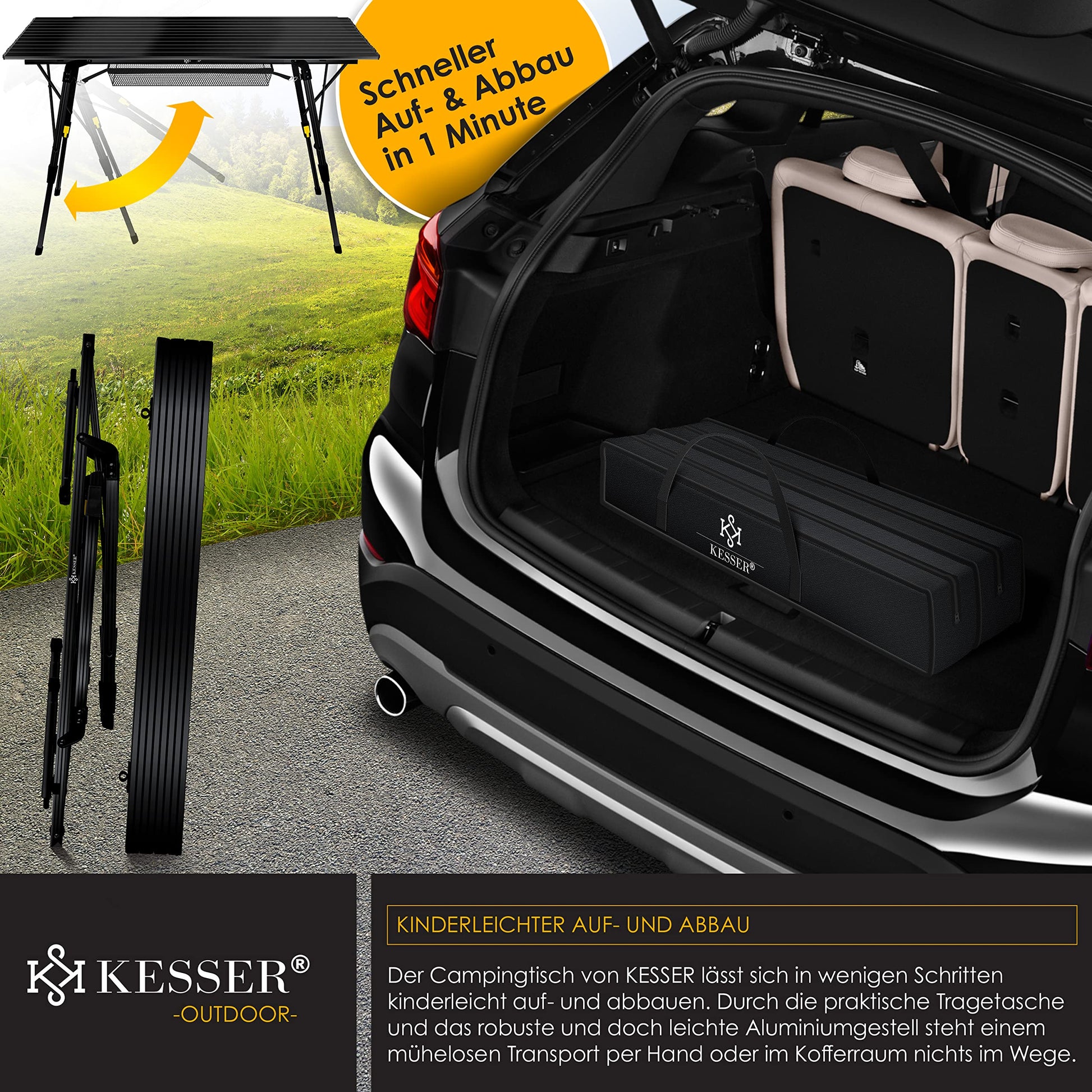 KESSER Campingtisch faltbar 120x70cm – Aluminium Schwarz