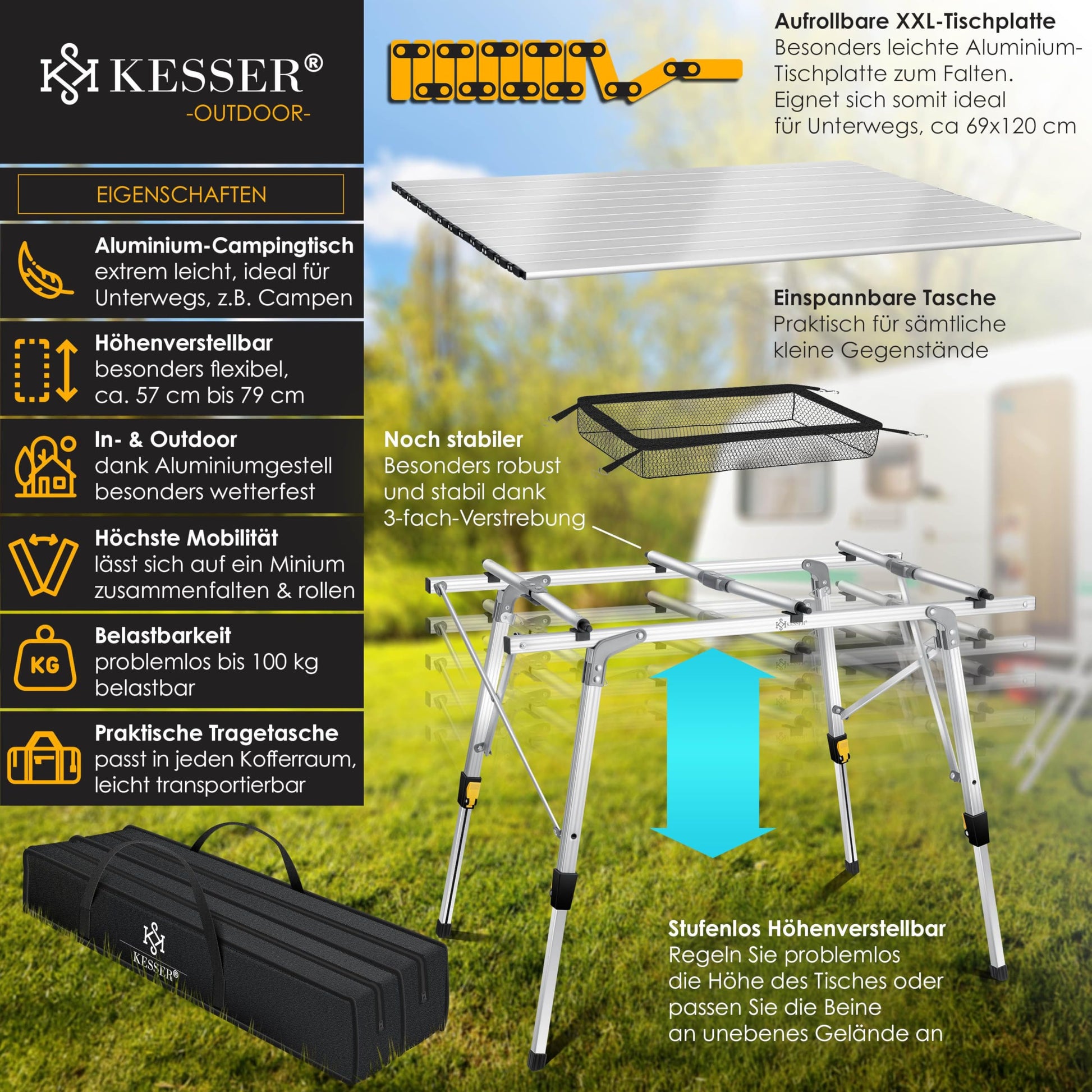 KESSER Camping Falttisch aufrollbar 120x70cm - Silber