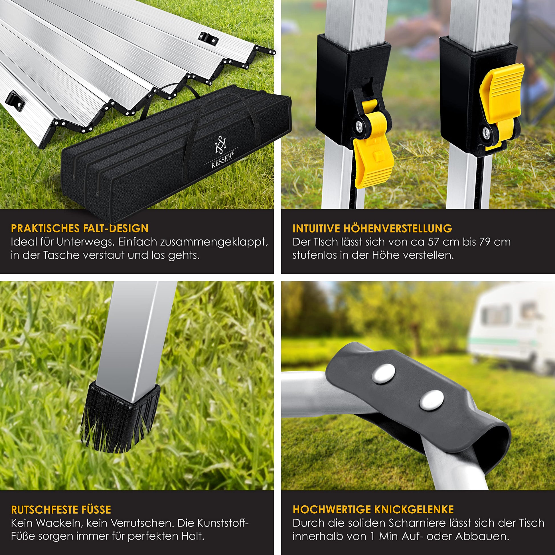 Entdecken Sie den idealen Begleiter für Ihre Outdoor-Aktivitäten: Der faltbare Campingtisch von KESSER, der Stabilität und Flexibilität auf clevere Weise vereint und sich jeder Umgebung anpasst.