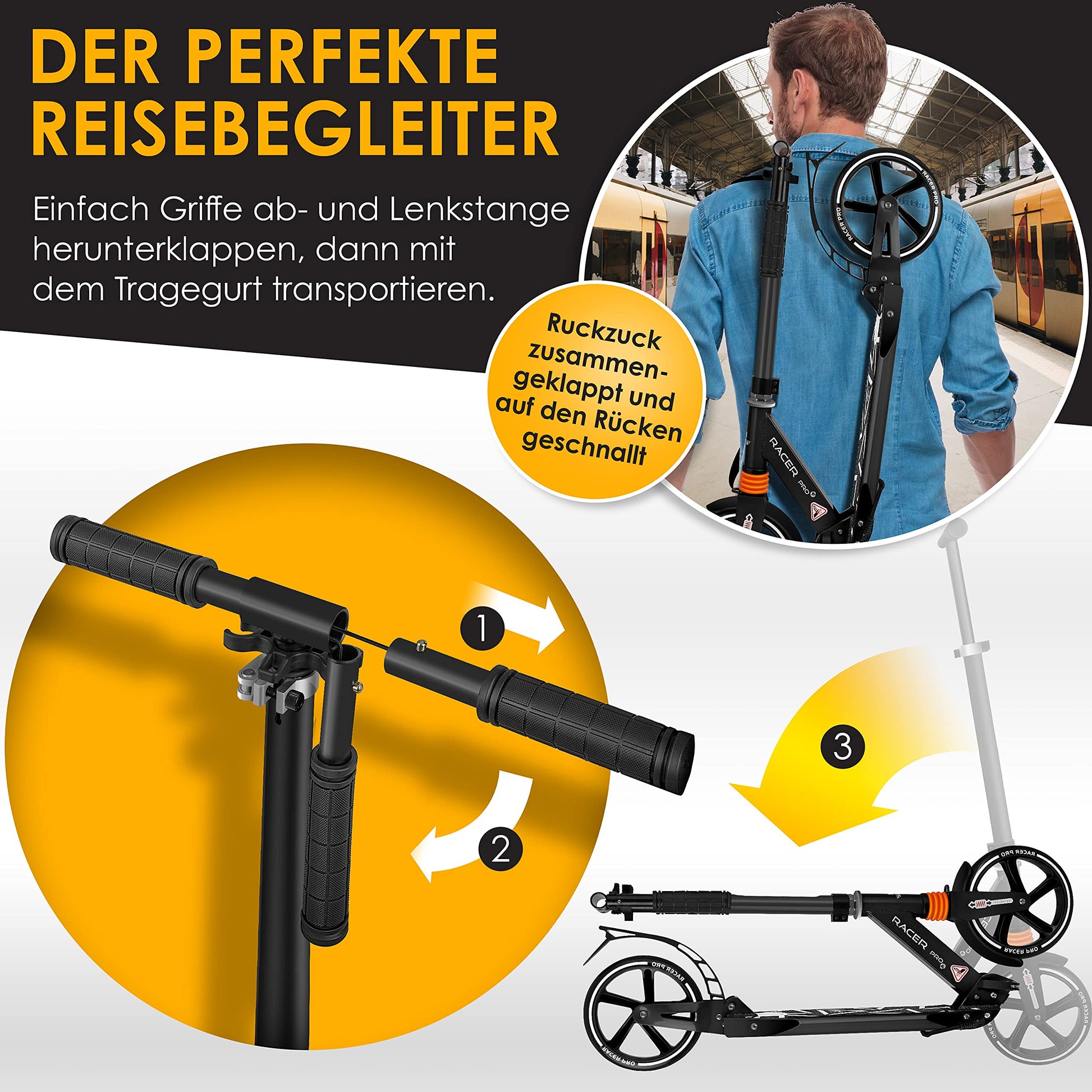 KESSER® Cityroller Scooter 205mm Räder PU Big Wheel - Pro-S Tretroller mit Doppel Federung, City-Roller Scooter klappbar und Höhenverstellbar, Inkl. Gurt, Roller Kickscooter für Erwachsene und Kinder