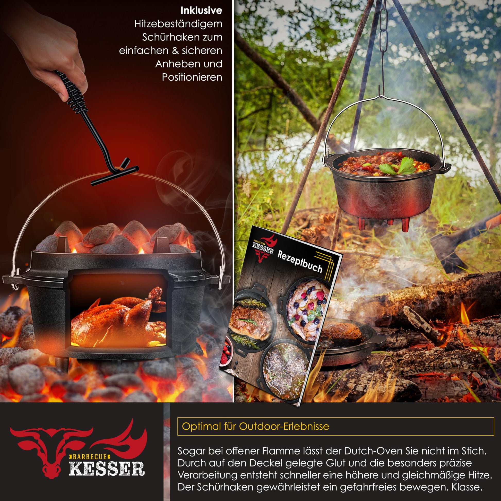 KESSER® Dutch Oven Set BBQ 9L - Gusseisen Feuertopf mit Füssen