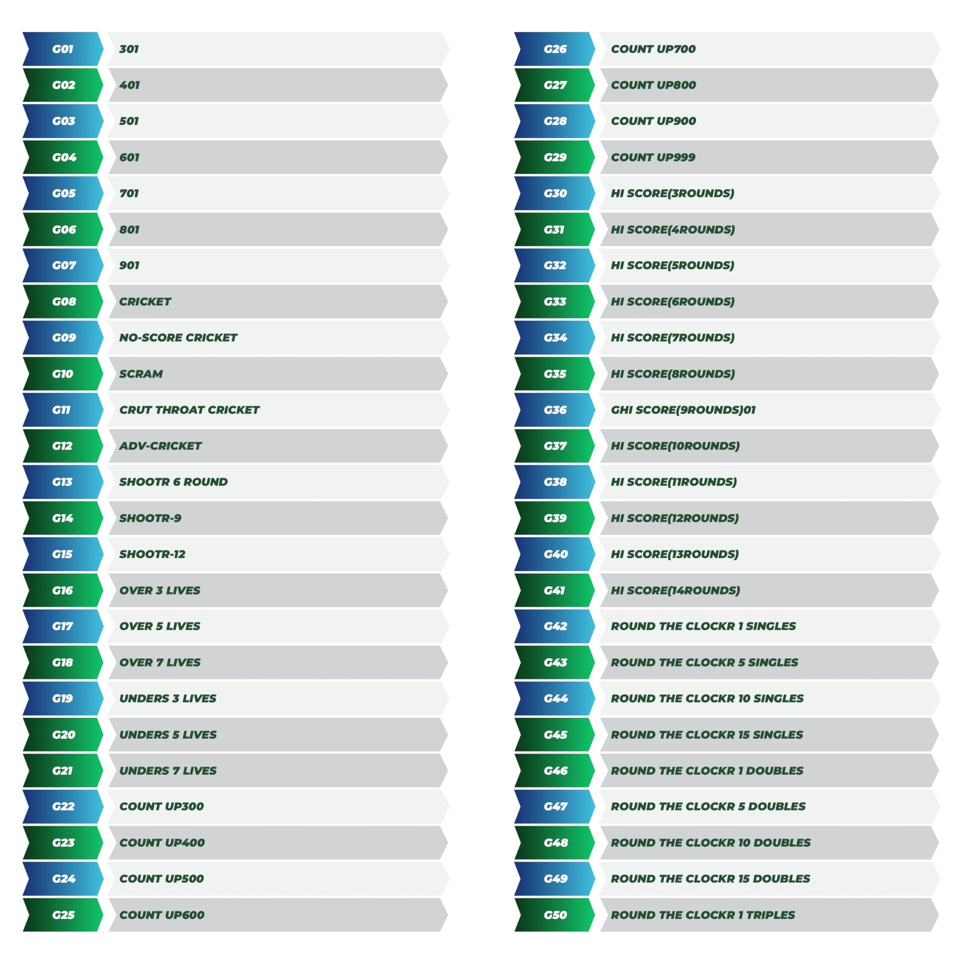 Für langanhaltenden Spielspass ist gesorgt. Das E-Dartboard bietet eine grosse Auswahl von 21 beliebten Spielen mit insgesamt 65 verschiedenen Variationen, sodass es sowohl für kurze Partien als auch für ganze Turnierabende nie langweilig wird.