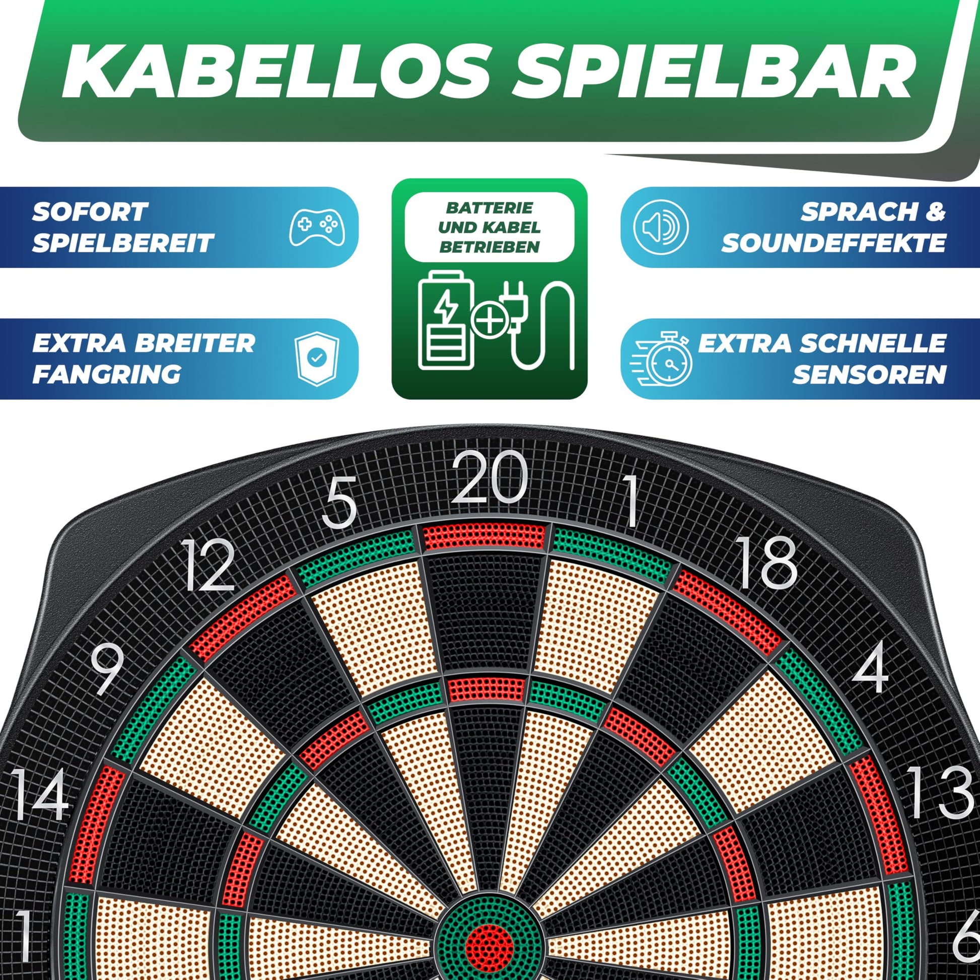 Der grösste Vorteil einer elektronischen Dartscheibe ist der Komfort. Das System übernimmt das Zählen der Punkte, was besonders Neulingen und Kindern den Einstieg massiv erleichtert. Dank verschiedener Schwierigkeitsstufen können Sie auch alleine gegen den Computer antreten und sind nicht auf Mitspieler angewiesen. Zusätzliche Sprach- und Soundeffekte sorgen für eine authentische Turnieratmosphäre.