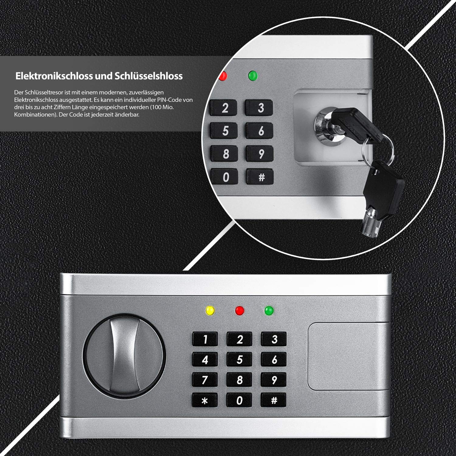 Dieser elektronische Panzerschrank ist die perfekte Wahl für alle, die eine kompakte, vielseitige und hochsichere Aufbewahrungslösung suchen.