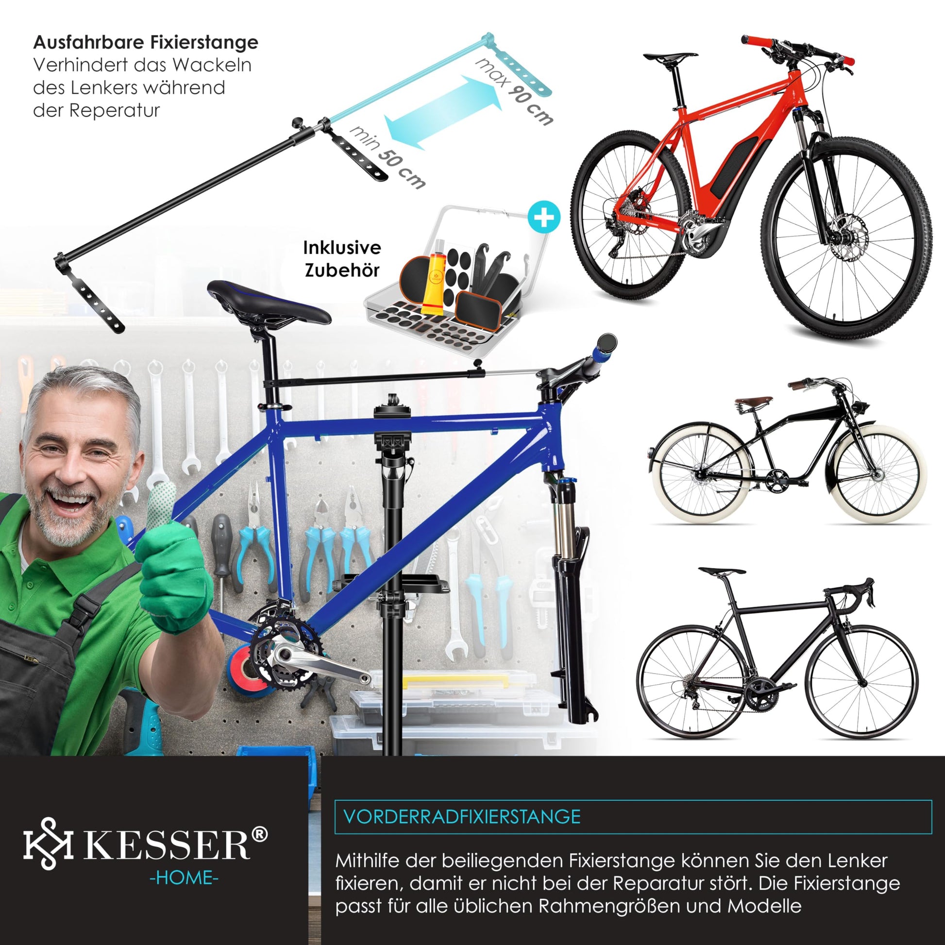 - Zubehör: Inklusive magnetischer Werkzeugablage, Lenkerfixierstange und praktischer Tragetasche