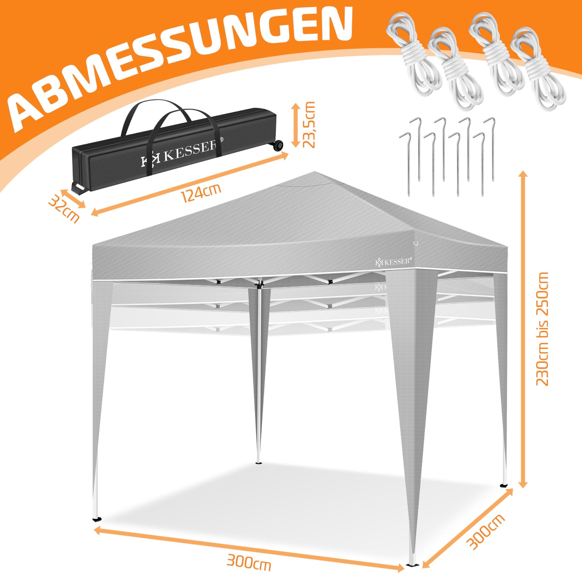 KESSER® Pop-Up Faltpavillon 3x3m Gartenpavillon - Grau